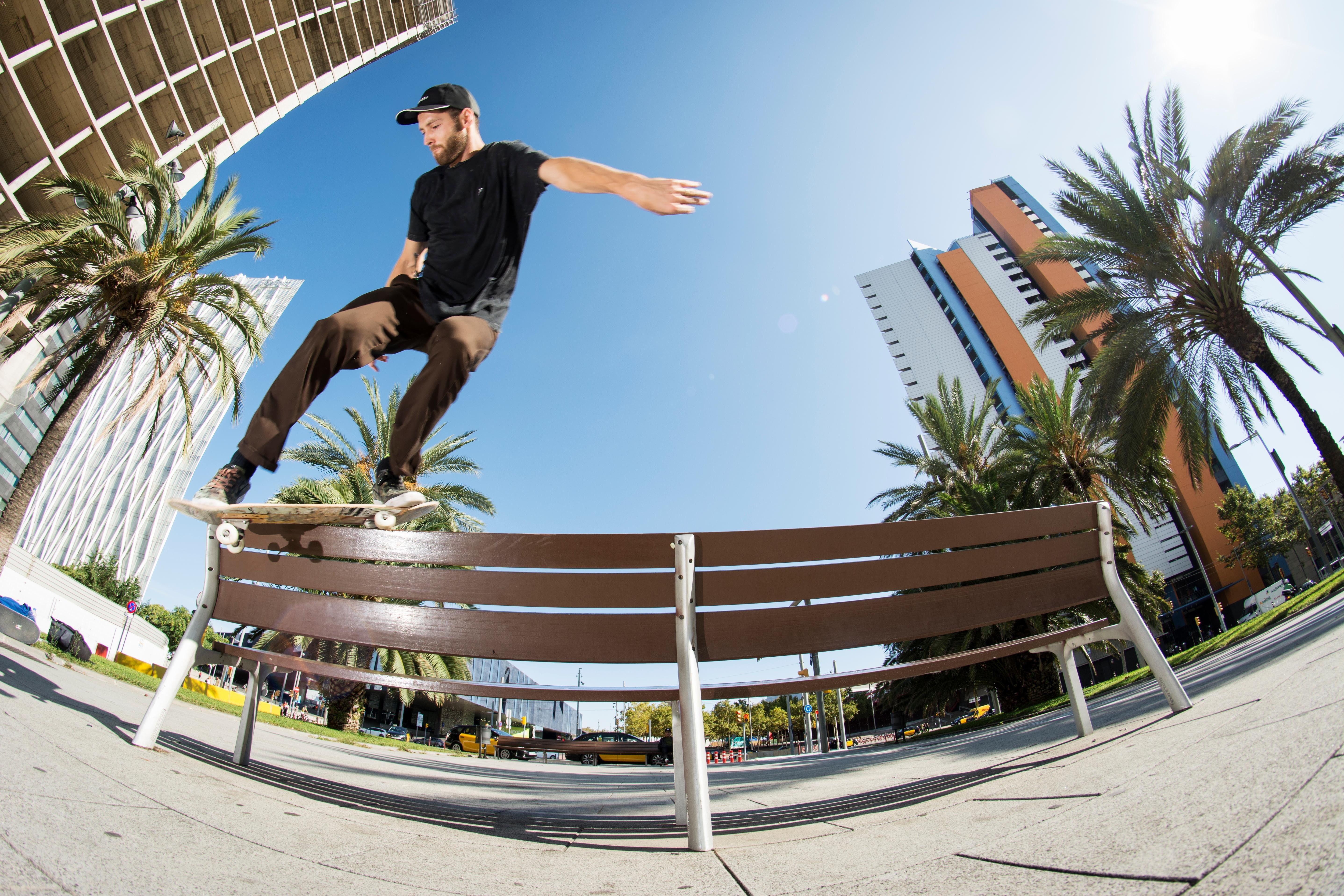 En el viaje a Barna conocimos a Shaun Hover y tuvimos la oportunidad de salir de sesión callejera por Forum con él. A parte de que, sitio donde veíamos un spot, sitio donde planchaba su respectivo truco, me impresionó bastante que consiguiera sacar este Bs smith en un banco de madera en el que aunque le echaras medio kilo de cera no tiraba nada y los ejes se quedaban clavados. Fue la primera foto de la tarde y me hizo pensar en que iba a merecer mucho la pena la sesión que se avecinaba.