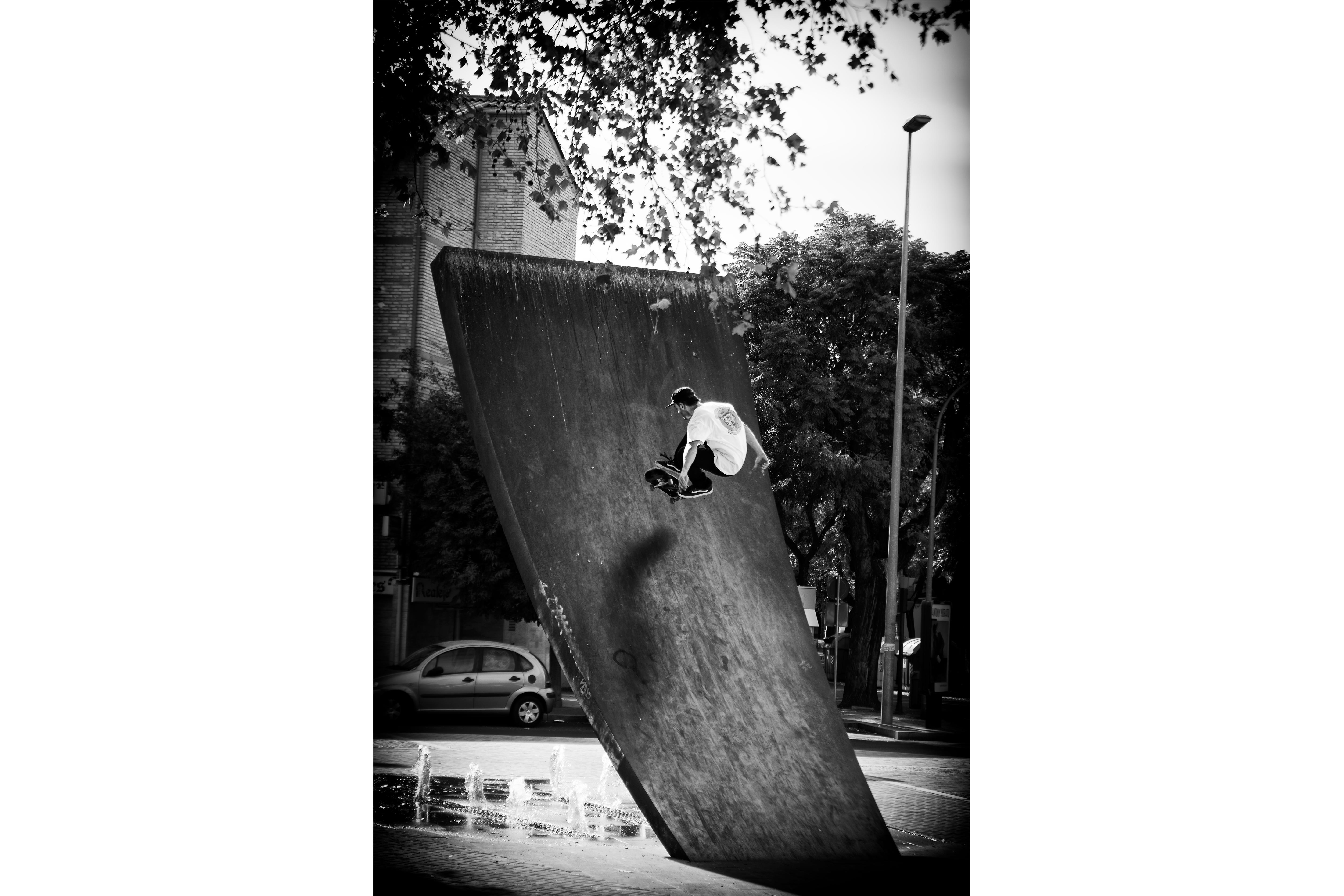 Esta foto la tenia en mente desde que llegue a Córdoba, pero no había surgido la oportunidad porque siempre que patinábamos allí la fuente estaba apagada, hasta que llego un día de invierno que me tocó arremangarme el pantalón y meterme en la fuente y aunque Jeffrey planchó el treflip a la primera (como era de esperar) me llevé la foto y también un resfriado, por cabezón.