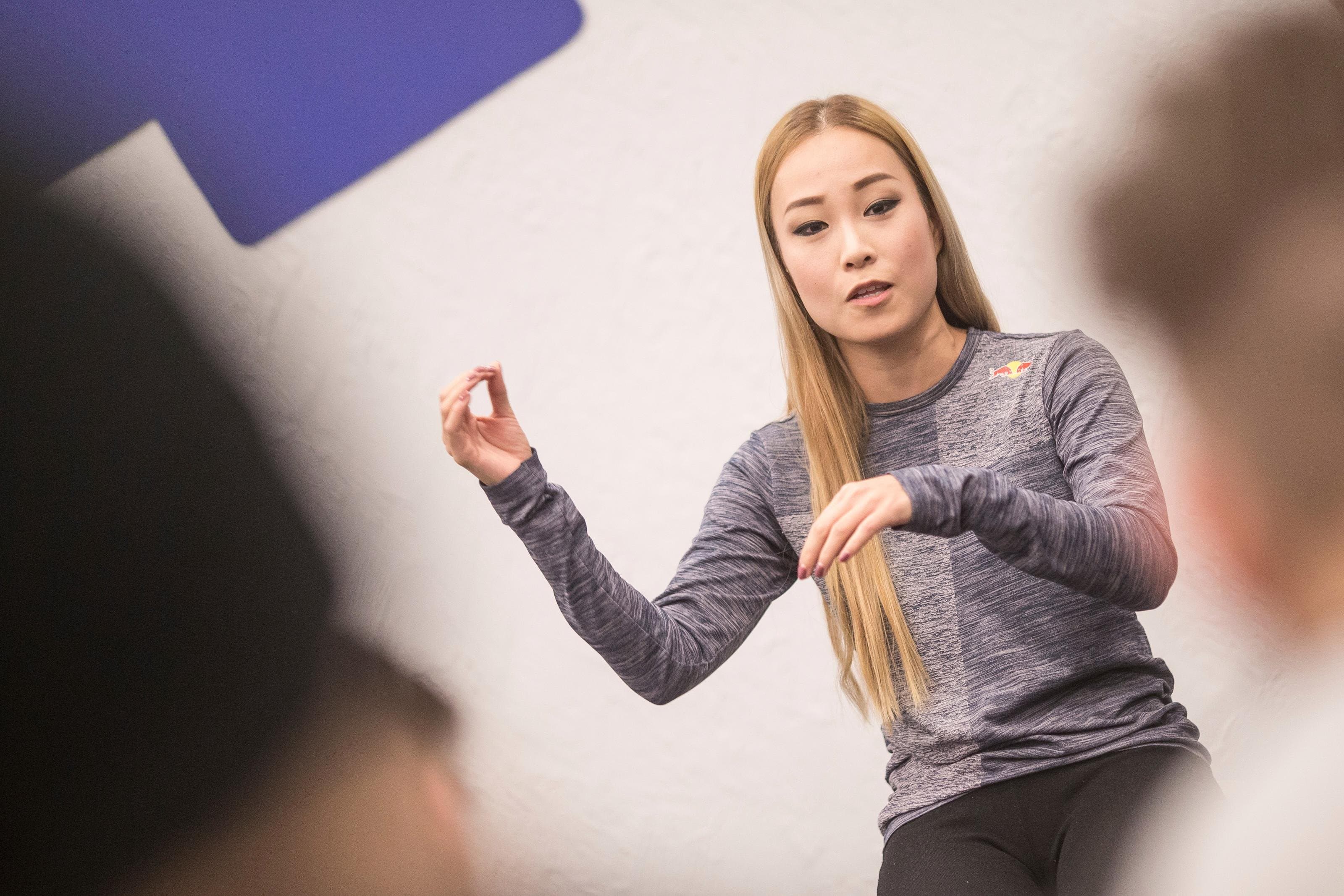 Dey Dey da instrucciones a un estudiante durante un Red Bull BC One Camp