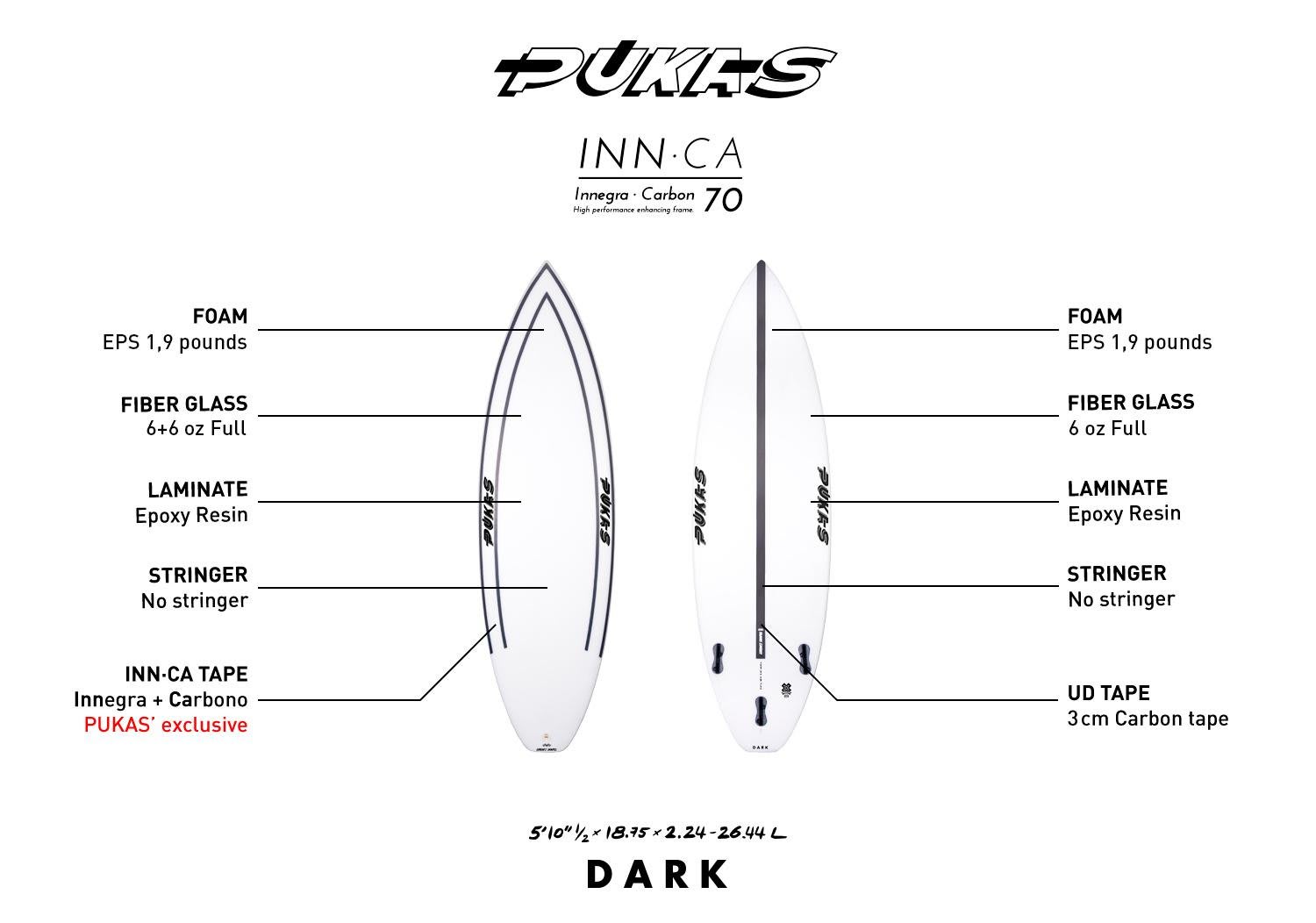 Las características técnicas de la Black Beauty son: rocker suave pero muy sensible que ofrece velocidad extra en secciones comprometidas y secciones huecas. Doble cóncavo, cantos anchos y cola en pin tail diseñada para giros largos y anchos.