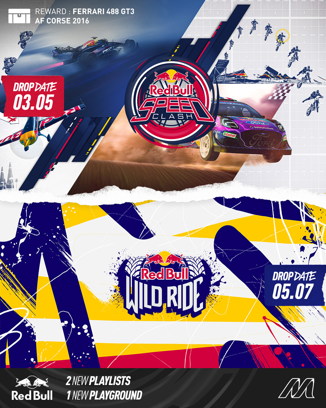 Por tierra, mar y aire: en The Crew Motorfest, la acción está en todas partes. Esta vez, la Temporada 6 sube la temperatura e introduce dos nuevas playlists Red Bull cargadas de adrenalina, con secuencias de películas de atletas Red Bull.