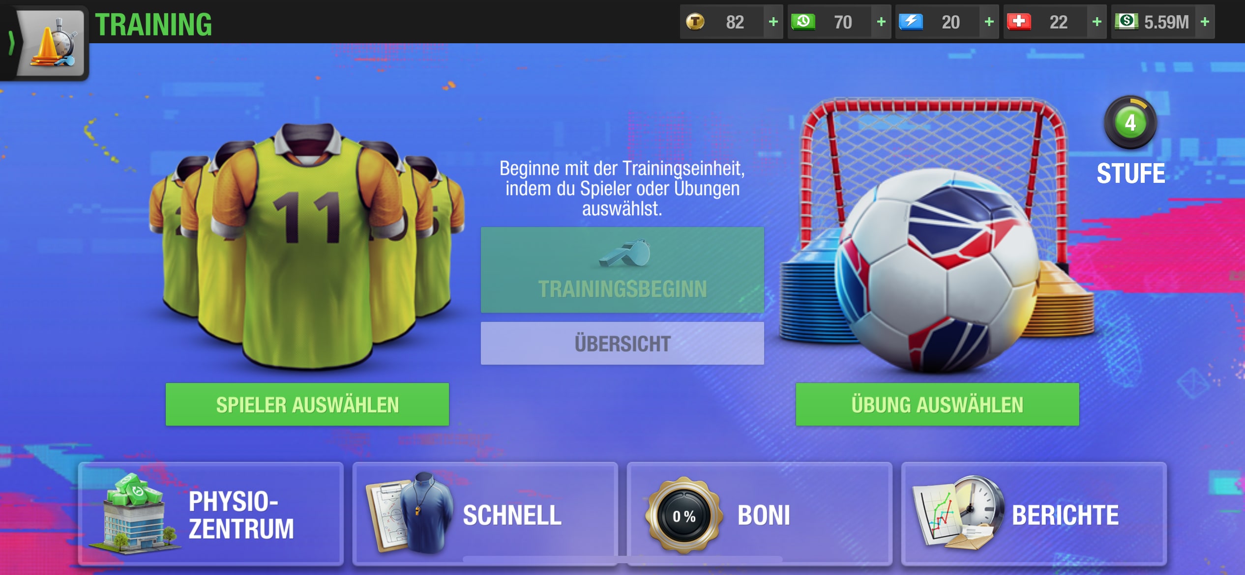 El entrenamiento individual de los jugadores en forma es una buena manera de mejorar sus habilidades y, por tanto, de todo el equipo. Los jugadores restantes pueden regenerarse y recuperar su forma física. Por otro lado, debes mantener las manos alejadas del entrenamiento rápido. Esto ahorra tiempo, pero las unidades son aleatorias.