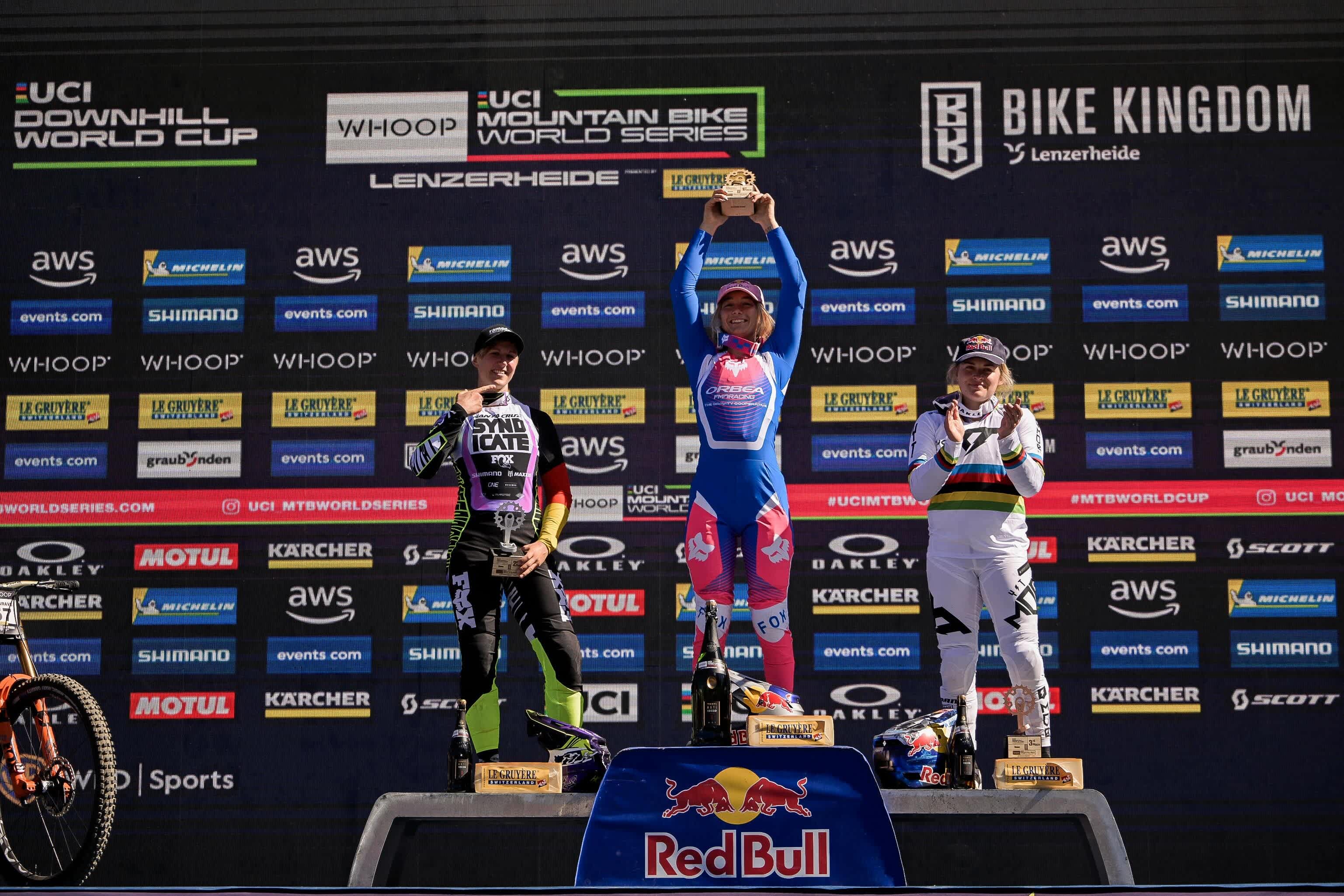 Höll fue la última rider en afrontar el trazado, y la austriaca demostró una notable velocidad en las partes altas del recorrido, pero perdió tiempo en los instantes finales y tuvo que conformarse con la tercera plaza. El tercer puesto de Höll la mantiene en cabeza de la clasificación general de descenso, pero su ventaja sobre Hemstreet se ha reducido a sólo 60 puntos.