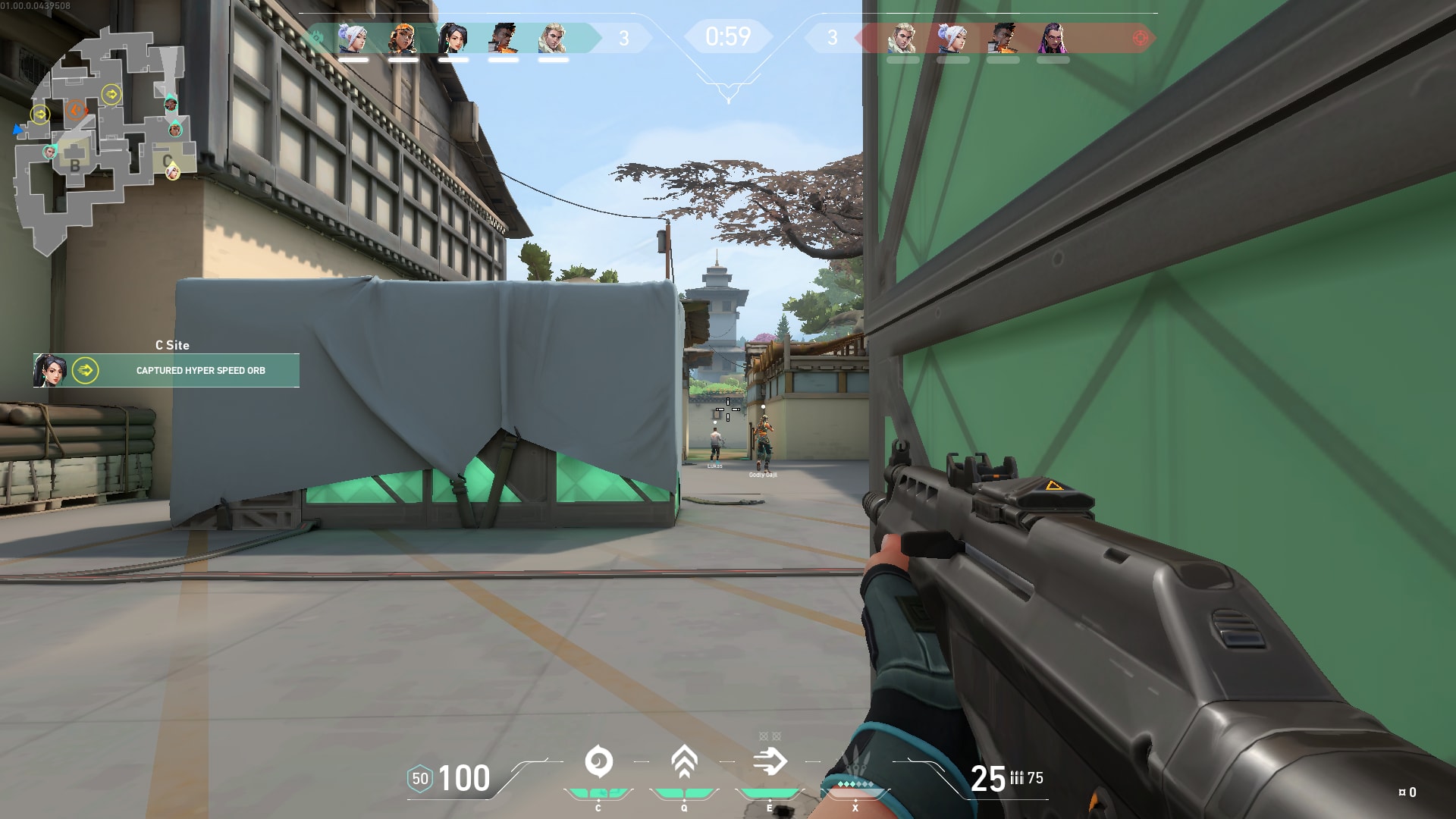 Sin embargo, a través de C Short, Site C es el lugar más fácil de atacar en el mapa, especialmente si puedes organizar el asalto rápidamente. Defensivamente, la única área de la que preocuparse es Window C. Obviamente, esto emplazamiento ha sido construido como un puesto de avanzada defensiva e incluso el defensor más inexperto entenderá la señal para hacer guardia allí. Una habilidad como la "Borrasca" de Jett es una buena opción para tratar de eliminarlos. Después de eso, hay mucha cobertura disponible en Site C a través de cajas apiladas y esquinas. Si puedes llegar hasta aquí, solo depende de quién es el más hábil, y quién es el mejor tirador.