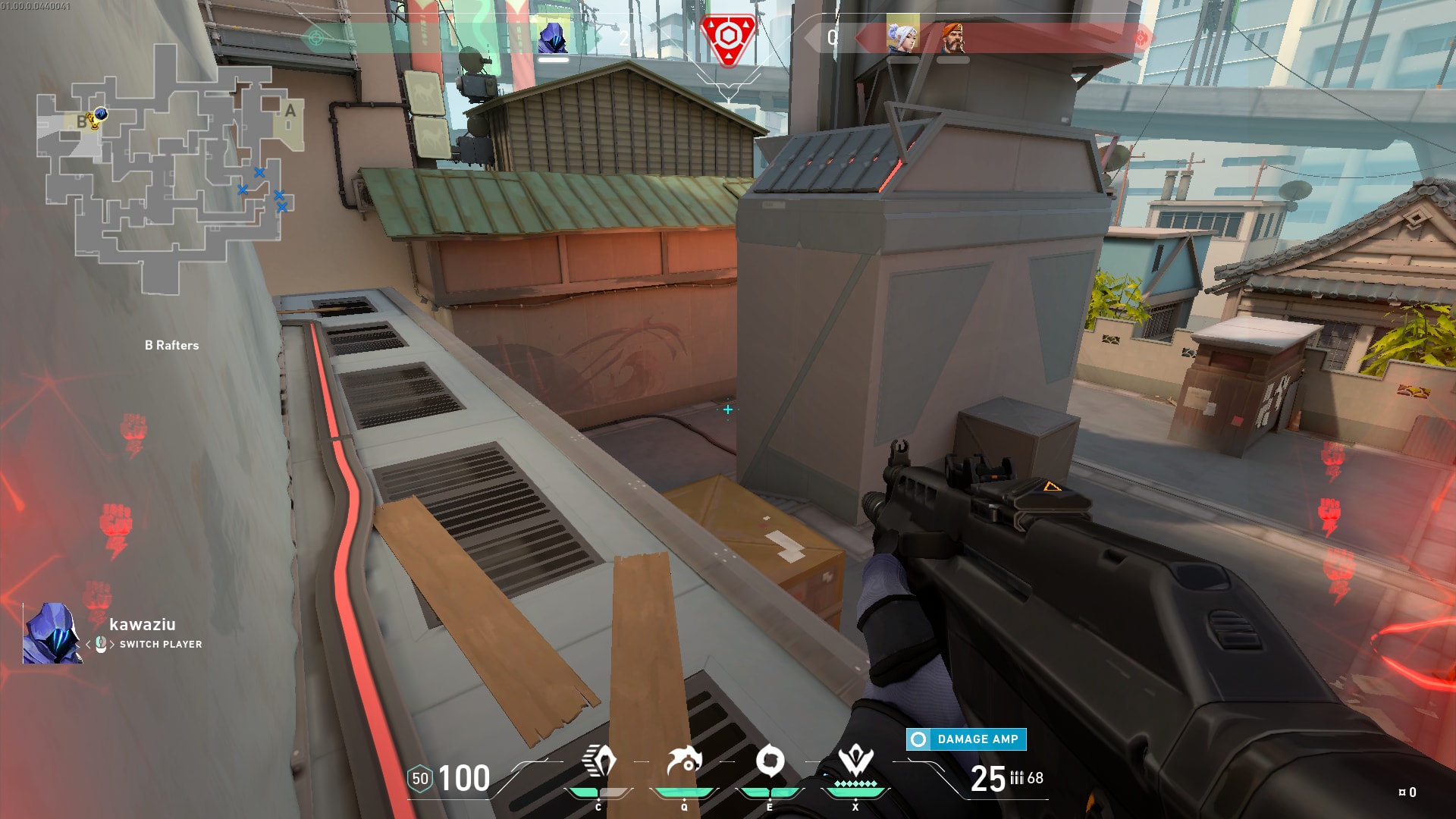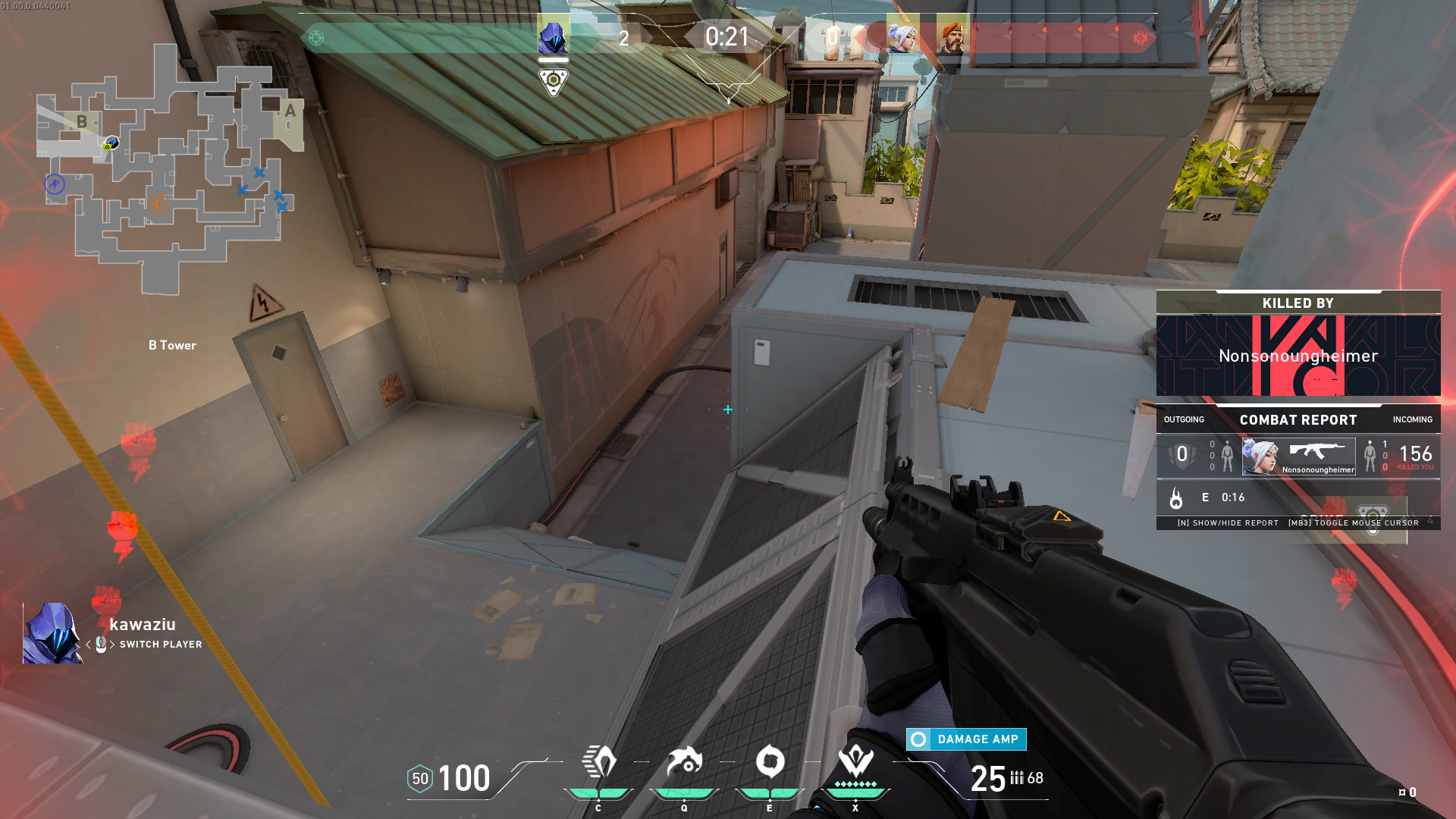 Si estás atacando el Sitio de Spike B, no hay prácticamente ninguna forma de hacerlo con éxito sin habilidades. Suponiendo, por supuesto, que esté debidamente defendido. No obstante, con el Sitio de Spike B bien fortificado, tendrás que utilizar muros o cortinas de humo –la Borrasca de Jett, así como los mencionados anteriormente de Phoenix y Sage- para minimizar la amenaza procedente de cualquier persona en Tower B.