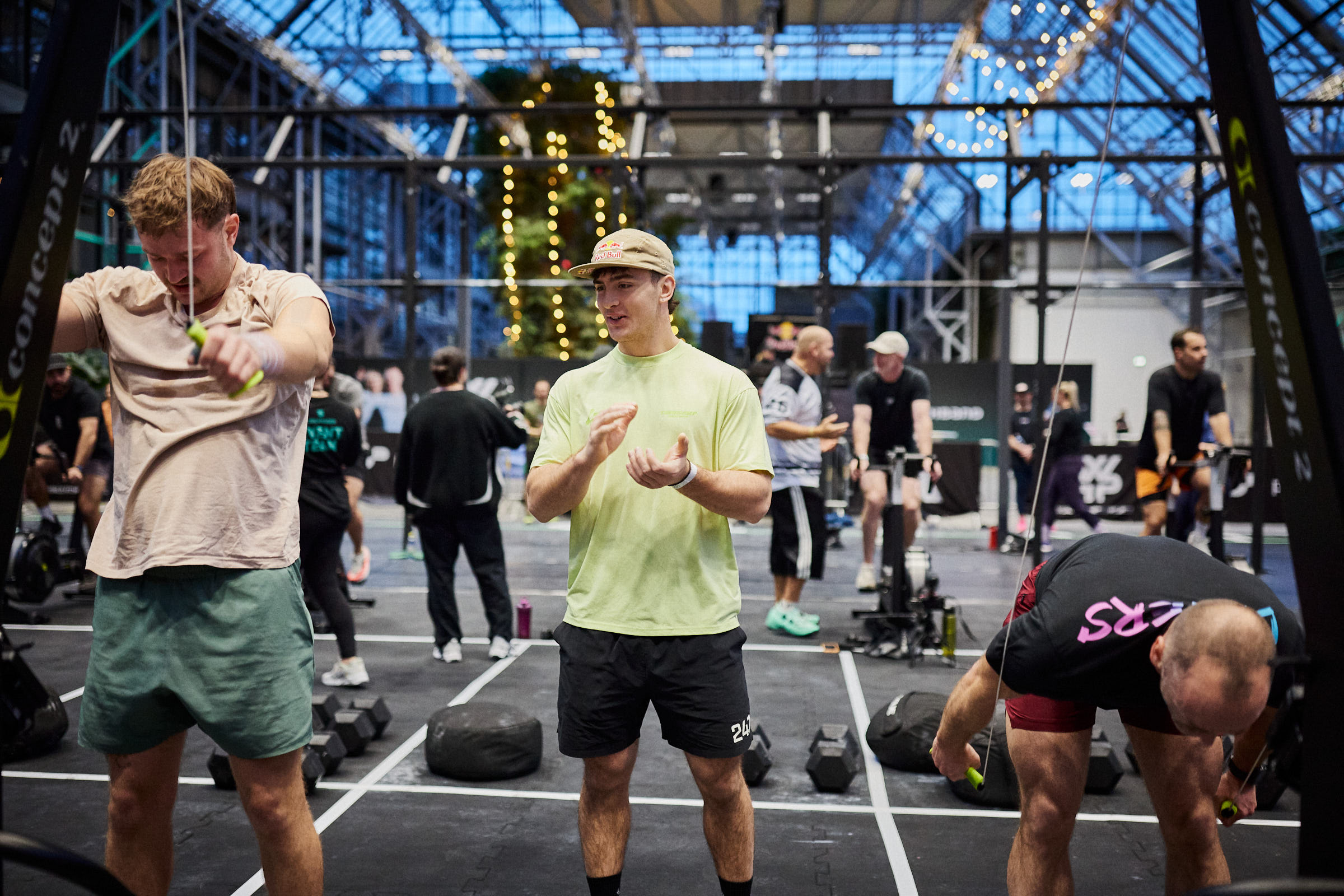 Dentro del Bella Arena de Copenhague, con el aire cargado de polvo de magnesio y expectación, vemos a atletas de élite estirados en las zonas de recuperación, reponiendo fuerzas entre pruebas. A solo unos metros, la siguiente serie ya está al límite sobre la tarima de competición. El murmullo de un público entendido —espectadores que viven este estilo de vida— llena el espacio mientras se coloca nuevo material para las siguientes y agotadoras pruebas.