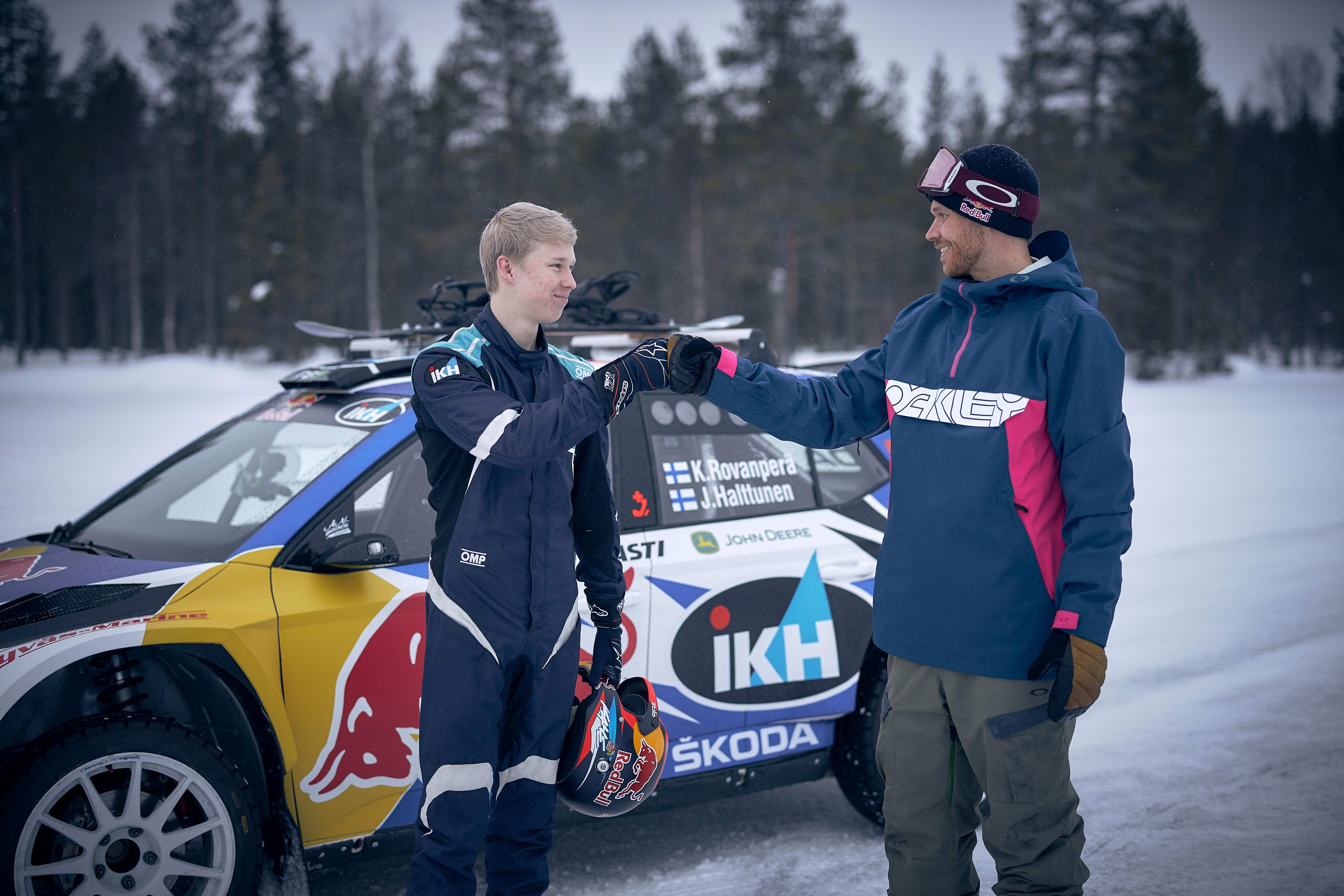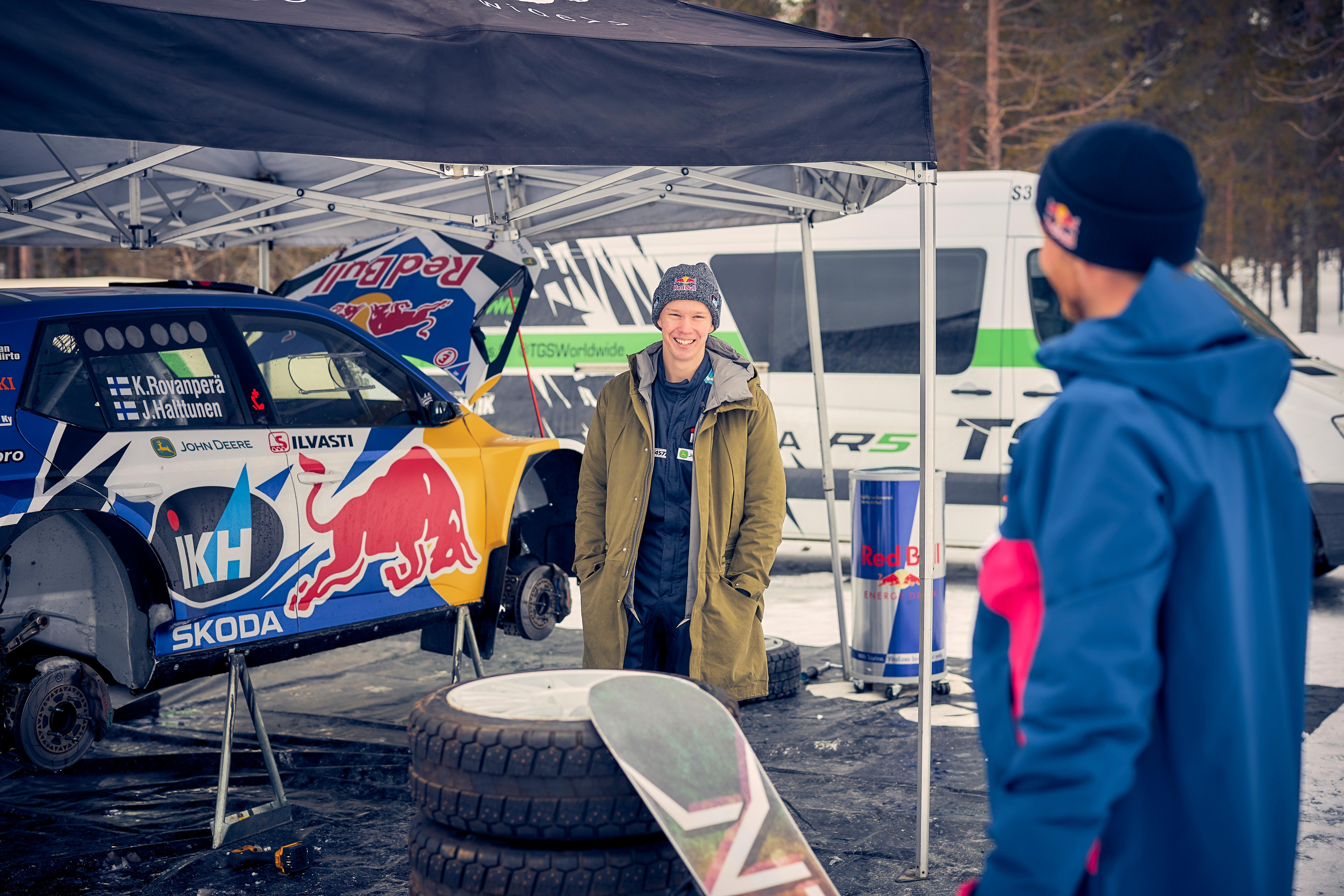 Myös WRC2-luokassa ajava Kalle Rovanperä on ihastuttanut luontaisilla ajotaidoillaan, niin rallipiireissä kuin muiden projektien parissa. Nämä kaksi omien alojensa ammattilaista tapasivat hieman erilaisen projektin parissa Rukalla. Tällä kertaa tarkoituksena oli roikkua ralliauton perässä lumilaudalla. Kuten arvata saattaa, nämä hurjapäät olivat innoissaan tästä ainutlaatuisesta projektista.