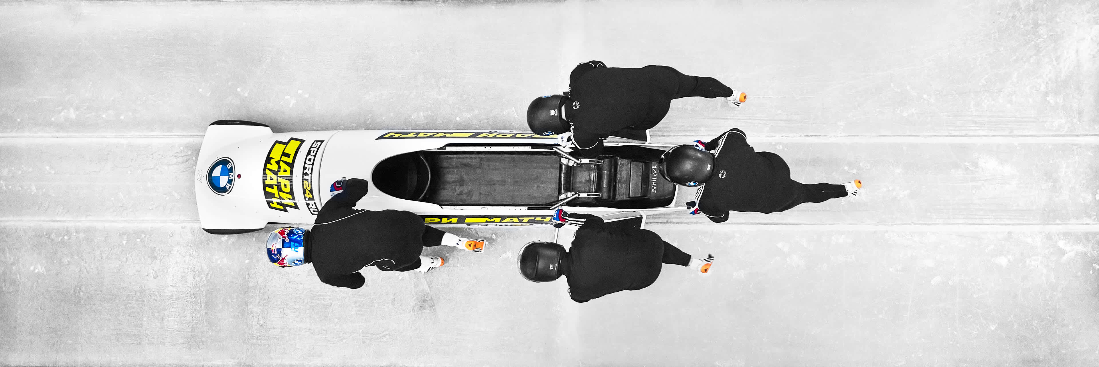 On l’a dit, les équipes de bobsleigh peuvent être composées de 2 ou de 4 membres. Ils ont chacun un rôle bien précis : le pilote est installé à l’avant, suivi de deux pousseurs, et à l’arrière, on retrouve le freineur. Pour ce qui est du bob à 2, les pousseurs ne font pas partie de l’équation. Au départ, tous les équipiers poussent le bobsleigh avant de sauter dedans et de rétracter les poignées. Ce moment est absolument crucial, car un retard au départ entraîne un manque de vitesse sur le reste du parcours, il est donc impossible de remonter. En moyenne, 0,1 seconde au départ devient 0,2 seconde (ou plus) à l’arrivée.