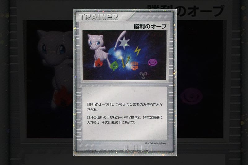 Les BRA (Battle Road Automne) sont les tournois Pokémon qui lancent la saison. Les trois meilleurs joueurs de chacun d’entre eux se voient offrir une carte Victory Orb. La version de 2005, représentant Mew, un Pokémon hyper populaire, est probablement celle qui a le plus de valeur. Si elle était en parfait état (ou presque), elle atteindrait les 14 000 €.