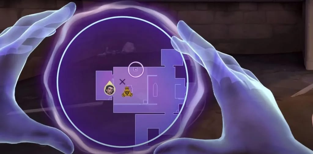 Ce sort fait la particularité de l’agent car il vous permet, même mort, de pouvoir accompagner et aider votre équipe en plaçant vos fumigènes dans un rayon autour de votre lieu de mort. Cela offre un avantage extrêmement important, car les fumigènes sont essentiels à la prise d’espace et des sites sur Valorant.