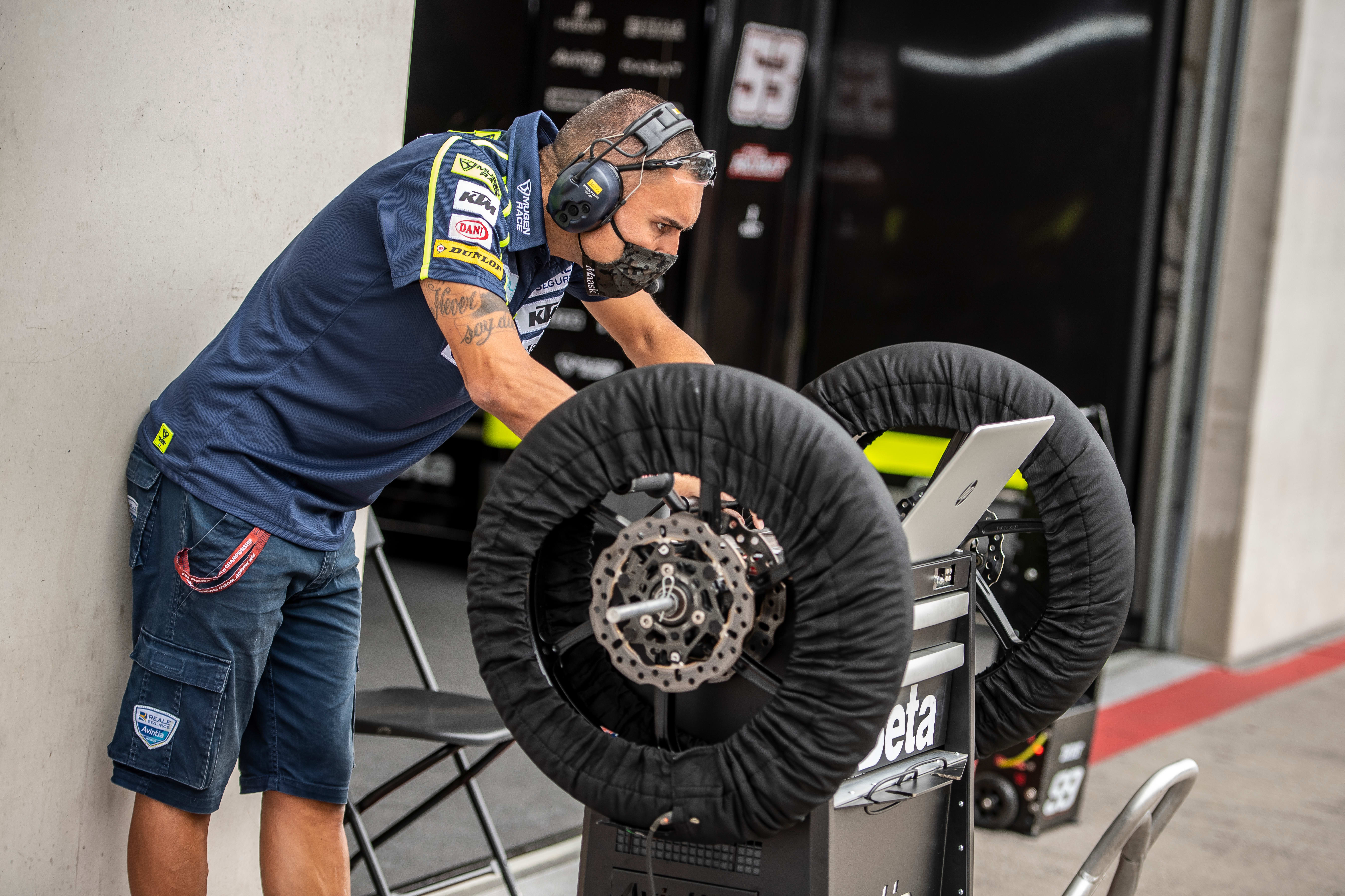 Bien évidemment, les motos sont elles aussi réglées en conséquence. « L’idée directrice est de tout assouplir afin d’adapter les réglages à un pilotage qui devient plus doux sur le mouillé, explique Nicolas Goyon, le chef mécanicien d’Iker Lecuona. On harmonise également les réglages de suspensions pour faire travailler au mieux les pneus pluie qui sont moins rigides au niveau de leur construction. Cela se fait généralement avec des ressorts plus souples, ou avec des links de suspensions différents. Ces pièces de transition placées entre le bras oscillant et l’amortisseur permettent de jouer sur les courbes d’enfoncement. Certaines équipes enlèvent un maillon à la chaîne de transmission pour rapprocher la roue arrière du centre de la moto et augmenter ainsi le poids sur l’arrière. »
