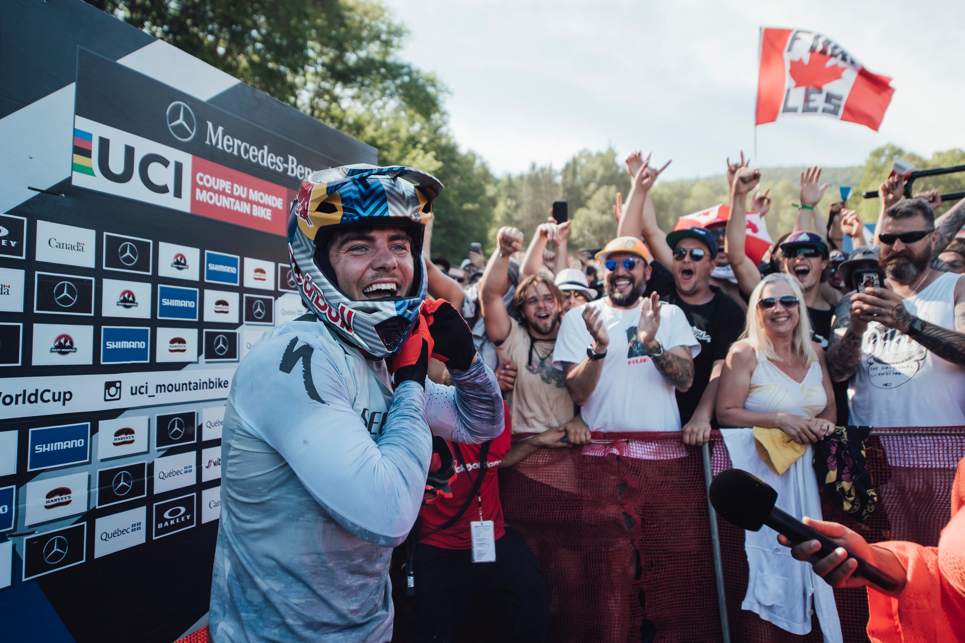 Finn Iles a remporté à Mont-Saint-Anne sa première victoire en Coupe du monde. Le Canadien s’est imposé devant le Britannique Laurie Greenland, longtemps en tête des chronos. Parti en dernière position, Finn Iles a compté plus d’une seconde d’avance au dernier intermédiaire. Mais sa chaîne a ensuite sauté du dérailleur et Finn a dû finir la course sans pouvoir pédaler. Il a alors perdu beaucoup de temps, mais a finalement réussit à franchir la ligne d’arrivée en gardant un souffle d’avance sur Greenland. En l’absence de Loïc Bruni, blessé à l’épaule à l'entraînement, la 3e marche du podium est occupée par Troy Brosnan. Le leader de la Coupe du monde, Amaury Pierron, a chuté et termine 26e.