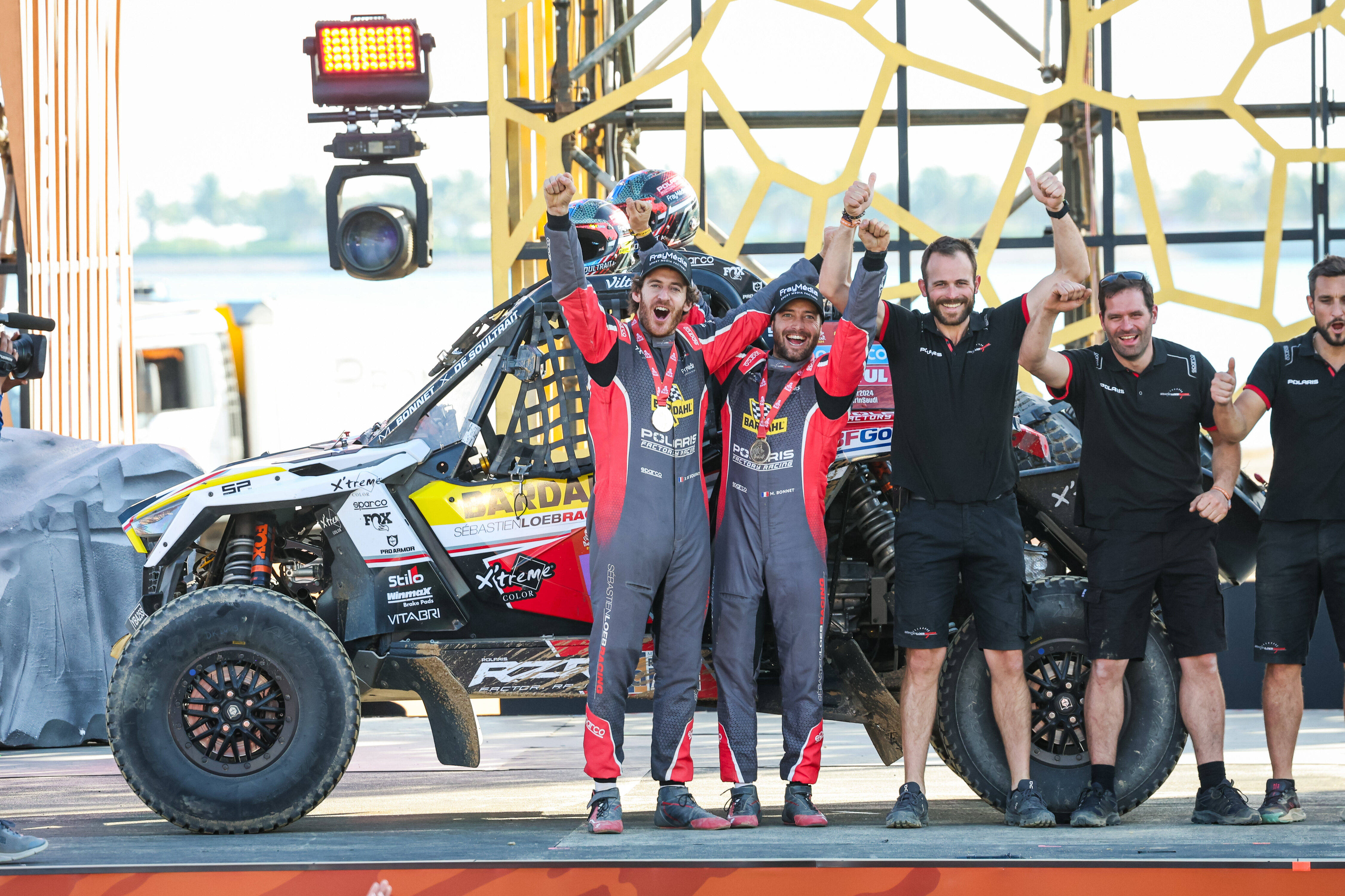 Xavier de Soultrait célèbre sa victoire du Dakar 2024 en catégorie SSV