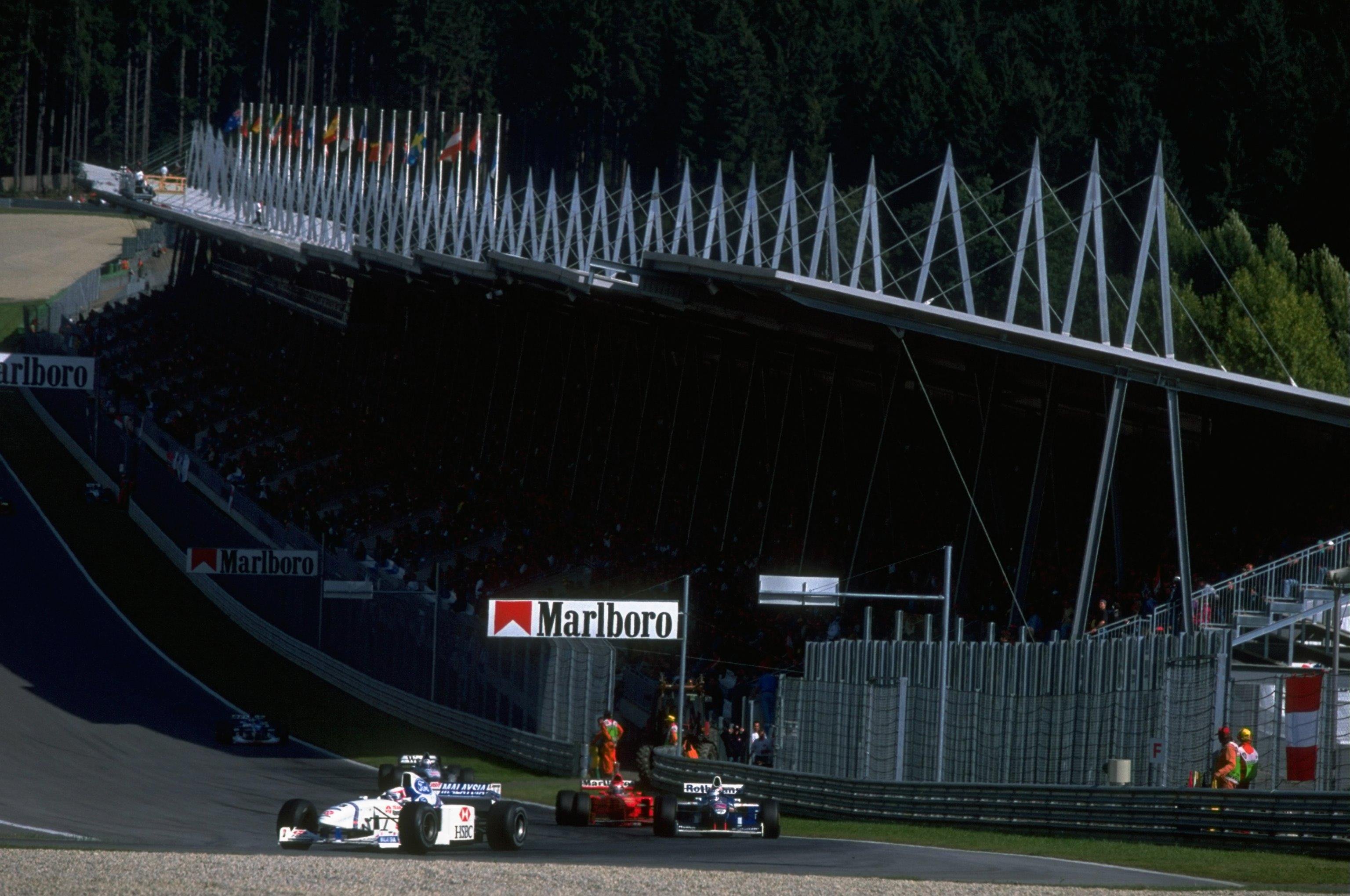 L'Österreichring fait peau neuve et se nomme désormais le Red Bull Ring. Un circuit bien plus court mais bien plus sûr. Le passage de Flatschach disparait, ainsi que le célèbre Hella-S et Schönberg, la ligne droite la plus rapide du calendrier où les pilotes atteignaient 350 km/h. Premier vainqueur de ce nouveau tracé, le même qu'aujourd'hui, Jacques Villeneuve finit par emporter le titre mondial la même année avec Williams. Le Canadien est toujours un homme populaire en Autriche.