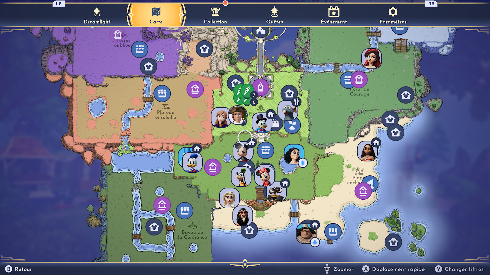 Les différents biomes de Dreamlight Valley, du moins leur première partie, se débloquent avec une monnaie spécifique qu’on pourrait qualifier comme des points de quêtes ou de haut-faits, puisqu’on l’obtient en remplissant des quêtes quotidiennes (à enchaîner à volonté) ou en effectuant diverses actions un certain nombre de fois. Foncez sur les zones qui vous sont interdites à vos débuts. Vous y obtiendrez de nouvelles ressources, ce qui vous aidera beaucoup pour les quêtes ou l’artisanat. La zone de Scar cache une mine où vous vous remplirez les poches.