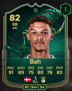 On vous propose une hybride Liga Portugal Betclic/Spor Toto Süper Lig (D1 Turque). Dans cette équipe, vous aurez un grand nombre de joueurs particulièrement cheaté, à commencer par la défense. En charnière centrale vous retrouverez Gonçalo Inacio et Antonio Silva. Deux pépites portugaises âgées de 23 et 20 ans qui pourraient vite devenir des incontournables de la Seleçao. Leur profil est radicalement similaire, ça tombe bien, c’est exactement celui qu’on attend de nos défenseurs centraux : grands, costauds, rapides et physiques. Vous pourrez avoir les deux pour moins 1 500 crédits cumulés. Honnête, non ?Pour les latéraux, l’objectif est clair : il faut que ça galope. Pour ce faire, on a ce qu’il vous faut. Alexander Bah et sa stat de 91 en vitesse est très intéressant. Il possède aussi 5 étoiles de mauvais pied, de quoi régaler les attaquants par des centres précis. Une évolution est même disponible pour lui, de quoi l’emmener à 82 de général. Une option qui pourrait d’ailleurs s’avérer très judicieuse.