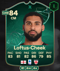 Si le dispositif de base comporte deux milieux offensifs, on vous conseille plutôt de jouer avec Loftus-Cheek et Reijnders un cran plus bas. Les deux milanais au tarif attractif sont aussi complémentaires qu’intéressants individuellement. Avec le premier dans le rôle de tour de contrôle et le seconde plus à l’aise techniquement, vous pourrez vite régner en maître dans l’entrejeu. D’autant que ces deux cartes sont éligibles à des évolutions. On vous conseille grandement d’en profiter. Voici la carte monstrueuse de l’Anglais une fois l’évolution achevée.