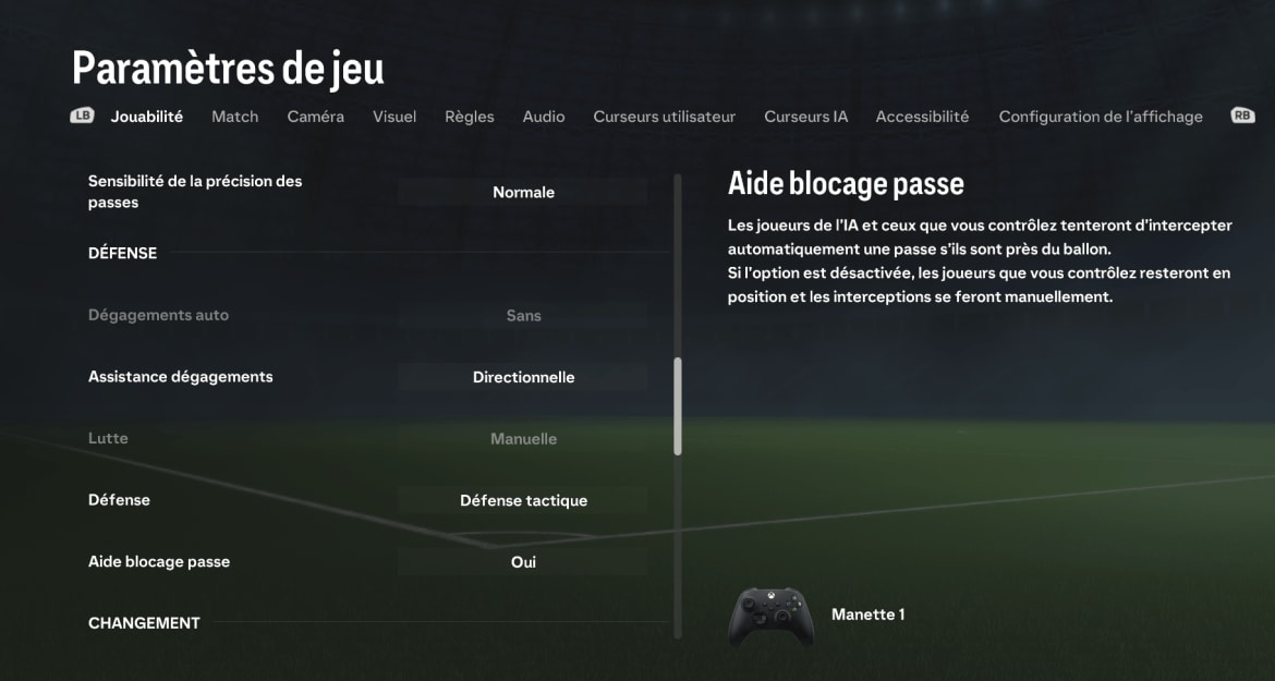 Pour défendre un centre ou empêcher un joueur de repiquer dans l’axe, on peut également appuyer deux fois sur R1 (RB) rapidement avant de rester appuyé sur la gâchette. Cela activera le pressing d’équipe partiel géré par l’IA et vos milieux de terrains se positionneront dans la surface de réparation pour couper les potentielles passes dans l’axe.