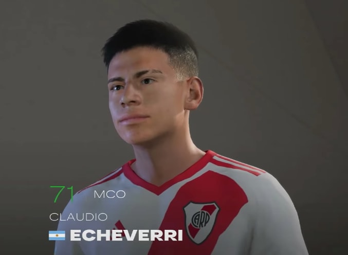 On est ici sur une pépite au prix plus abordable, mais pas forcément moins prometteuse. Claudio Echeverri est un milieu offensif central évoluant encore dans son pays natal, même s’il ne s’y éternisera pas. En effet, Manchester City a flairé le potentiel du joueur et lui a fait signer un contrat courant jusqu’en 2028. Un très bon coup pour le club anglais qui l’a laissé terminer sa saison à River Plate, son club formateur. S’il n’est pas encore connu du grand public, ça ne saurait tarder ! Le meneur de jeu a pour principale caractéristique la vitesse. Déjà 87 alors qu’il n’a que 71 de général en début de jeu. Autant vous dire qu’il risque de galoper comme personne une fois qu’il aura un peu progressé au sein de votre club. En début de jeu sa valeur n’est que de 4.8m d’euros, alors n’hésitez pas !