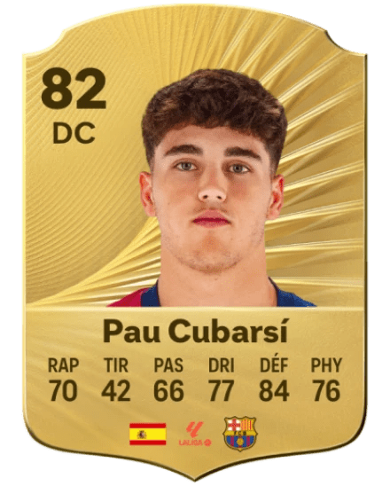 Toujours en Espagne, Pau Cubarsí a réussi à s’imposer sous les ordres d’Hansi Flick, assez pour être aussi appelé en équipe nationale. Avec un 82 de note générale du haut de ses 18 ans, le petit (1,82 m tout de même) ne demande qu’à progresser. Il peut déjà être intégré dans n’importe quel onze puisque toutes ses stats défensives sont à plus de 80, solide.