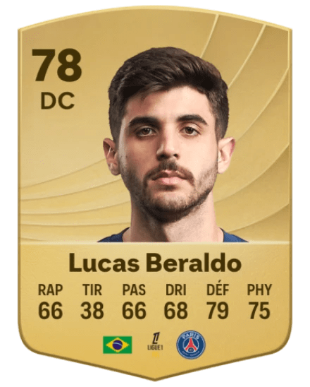 Même s’il ne s’est pas encore complètement imposé du côté de Paris, Lucas Beraldo a un vrai potentiel. Par contre, avec 61 d’accélération et 70 de vitesse, il va falloir faire attention à son positionnement. Sinon, vous pouvez aussi opter pour Cristhian Mosquera (21 ans, 77 de général et 85 de potentiel) qui vient d’arriver à Arsenal.