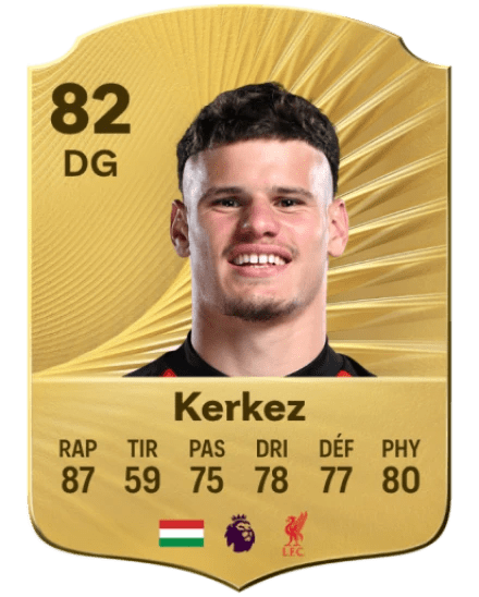 Dominik Szoboszlai n’est plus le seul hongrois à évoluer à Liverpool, sur les rives de la Mersey. Milos Kerkez a la lourde tâche de concurrencer Andrew Robertson. Même s’il n’est pas tout à fait aussi rapide qu’Alejandro Balde (88 et 87 en accélération et vitesse), Kerkez est une option à étudier au poste de latéral gauche.