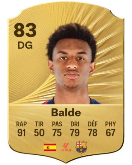 Si vous avez une dent contre le Barça, vous en avez probablement marre de voir le club blaugrana représenté en nombre dans les articles des meilleurs jeunes, mais on le sait : la Masia forme du monde et le fait bien. Alejandro Balde en est l'un des derniers exemples, et avec ses 90 d’accélération, 91 de vitesse et Foulée rapide, il est totalement meta.