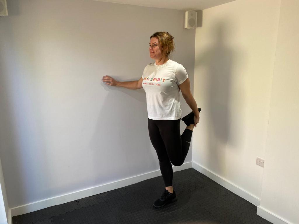 Pour rendre l’étirement plus puissant, "poussez votre hanche vers l'avant tout en maintenant votre poitrine ouverte" explique Sharland. "Votre objectif est que votre talon touche vos fesses tout en gardant vos genoux ensemble l’un à côté de l’autre."