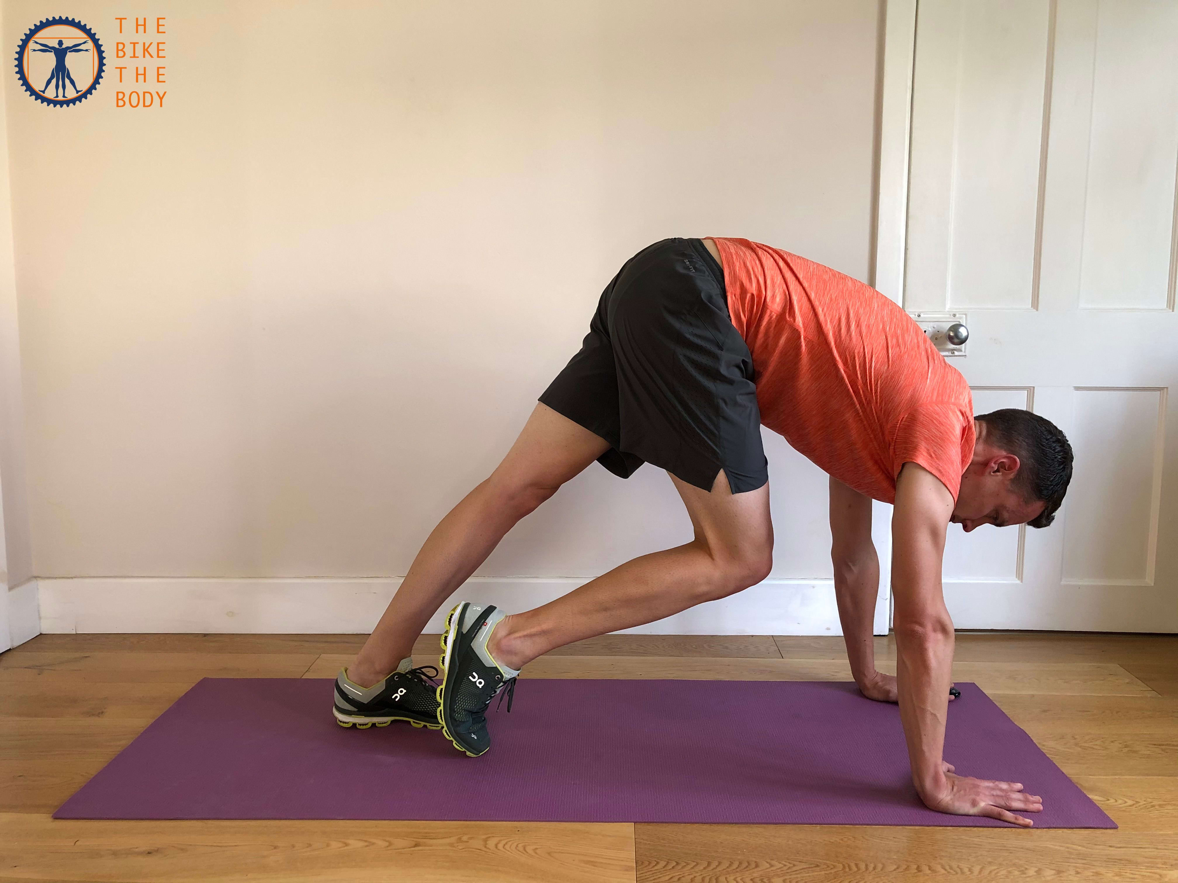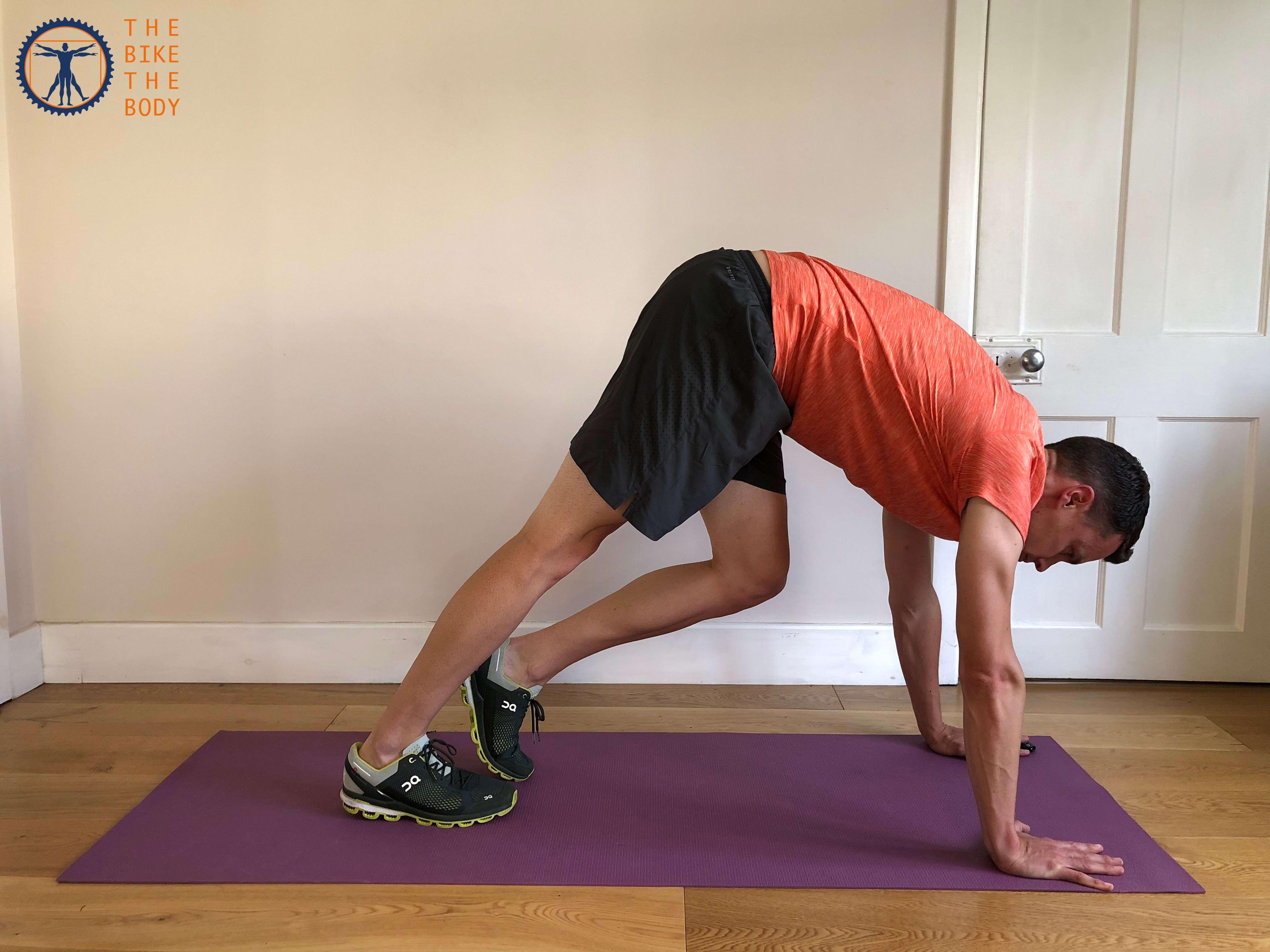 Bénéfices : "Le pied reste généralement tendu dans la même position pendant le cycle de pédalage. Les mollets travaillent donc dur en position statique pour produire un pédalage efficace" indique McCullough. "Il est donc important, après chaque sortie, de faire travailler les articulations et les muscles sur une plage complète. Le bonus ici est que vous obtenez un bel étirement pour les hanches, le bas du dos et les ischio-jambiers en même temps."