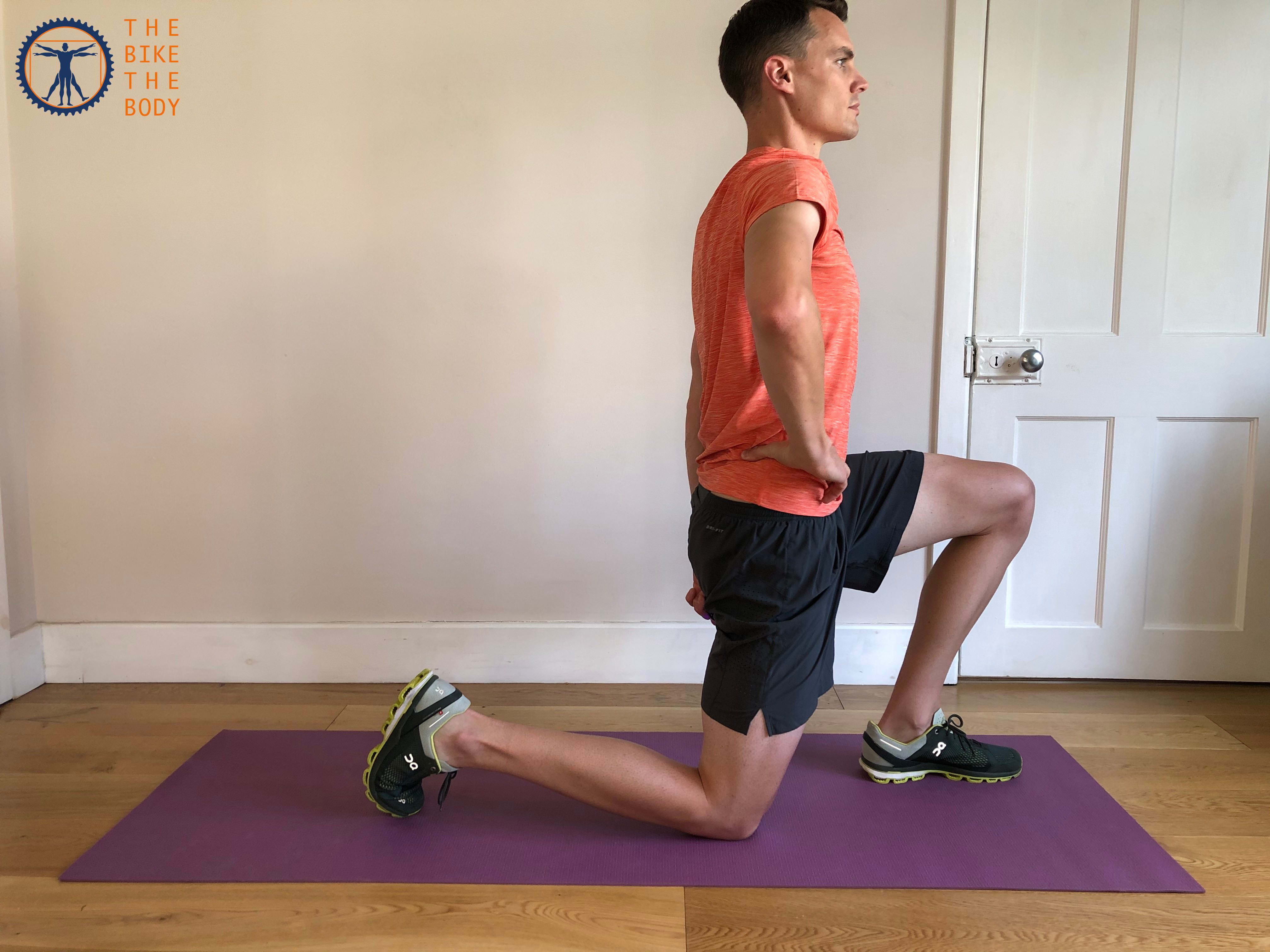 - Inclinez le bassin vers votre cage thoracique du côté où le genou est au sol. Cela devrait générer une légère tension sur l'avant de votre hanche.