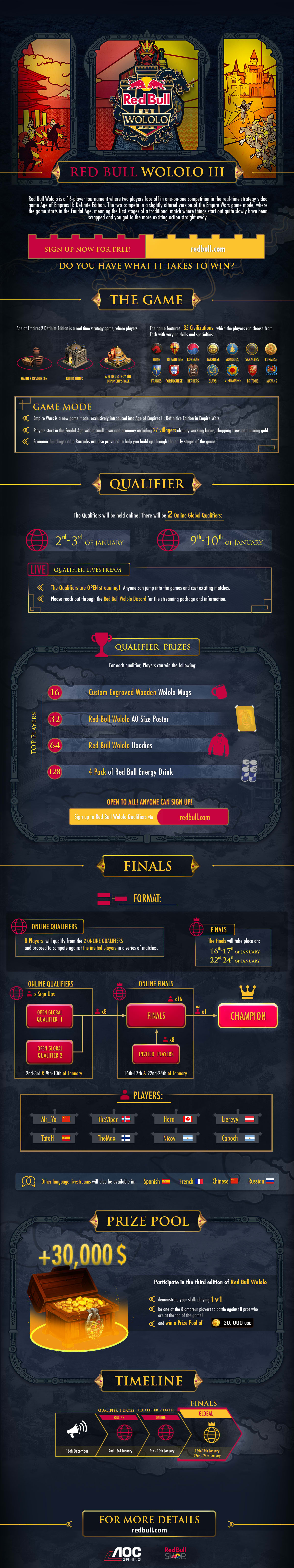 Bien que le jeu en soi reste le même que les éditions précédentes, la nouvelle histoire englobe celles des Red Bull Wololo I et II. Ce qui signifie que le vainqueur a encore à plus à gagner qu'une part du prize pool de 30 000 dollars (environ 24 600 euros).