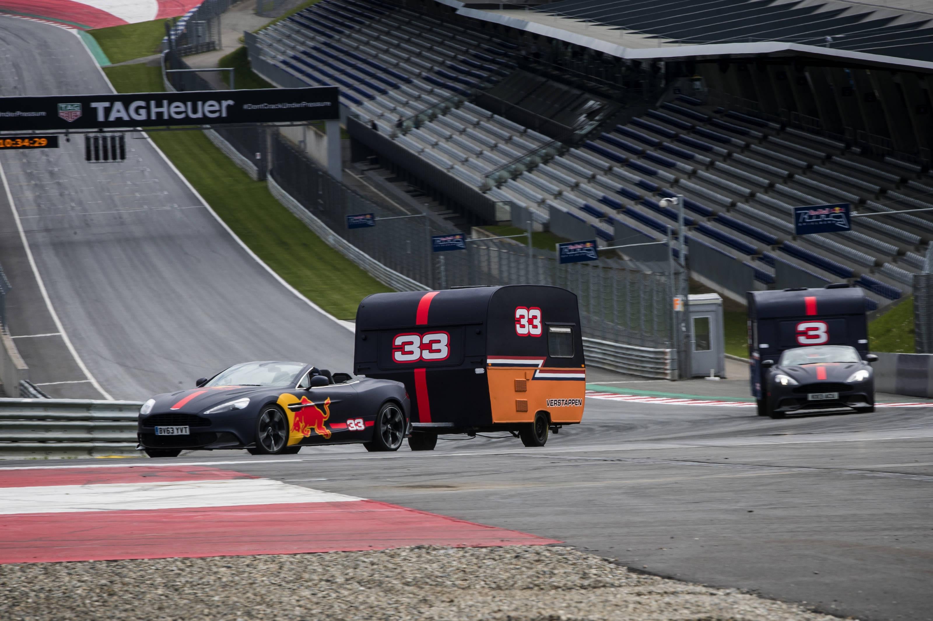 Chaque Volante disposait d’un petit extra : une caravane. Des belles bêtes de 400kg pièce montées sur des pneus Pirelli qu’ils devaient se trimballer pendant neuf tours sur le Red Bull Ring.