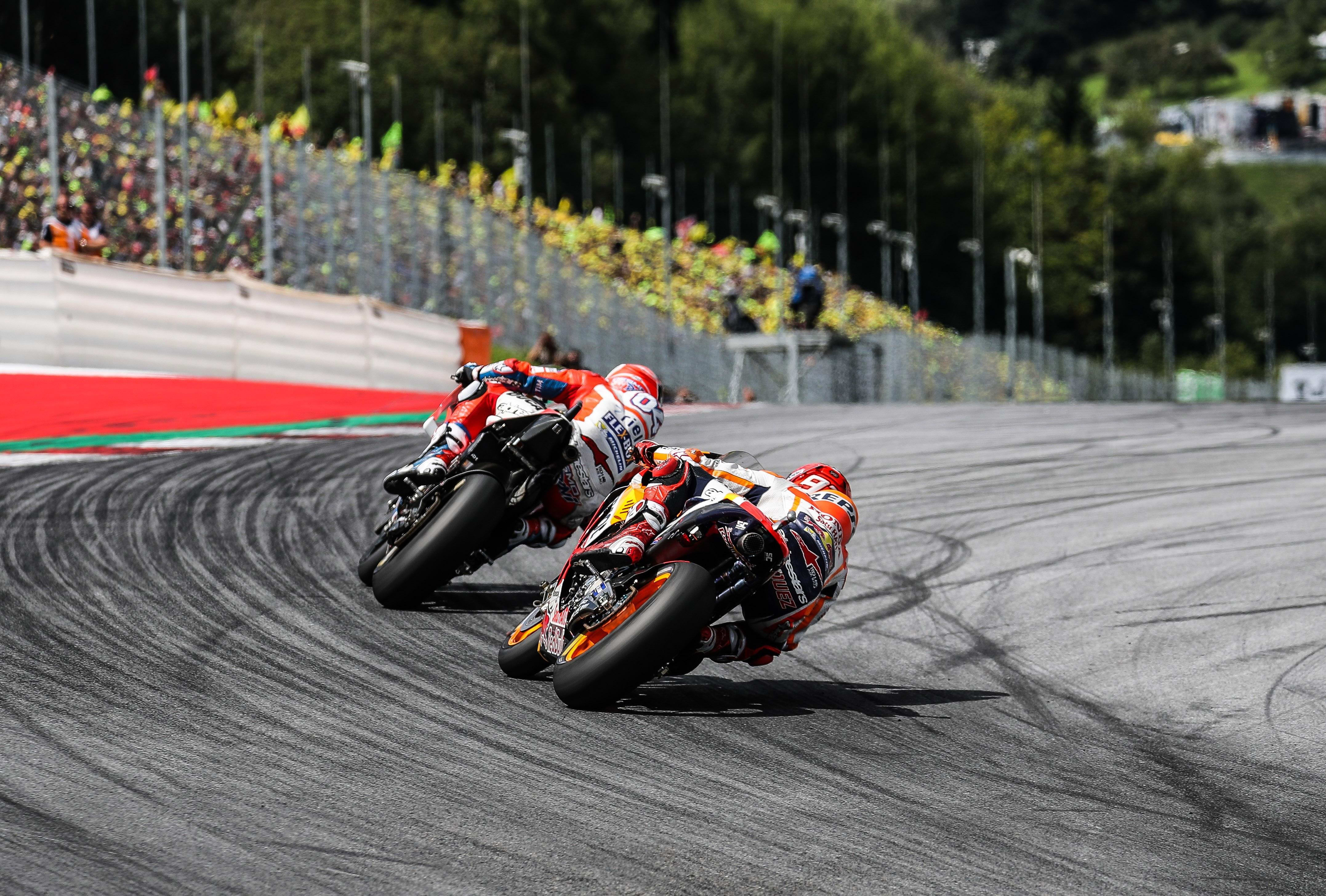 Il n’y pas photo de ce côté-là. La vitesse moyenne des F1 est de 240km/h sur le Red Bull Ring, tandis que celle des motos est de 182 km/h. A titre d’exemple, Kimi Räikkönen a bouclé cette année le tour le plus rapide du Grand Prix d'Autriche en 1m 06.957s, alors même que Johann Zarco, son équivalent en Moto GP, a eu besoin de 1m24.312s en 2017 sur le même circuit. Pourquoi une telle différence ? Parce que les F1 posent plus de caoutchouc sur la piste et s’appuient sur leur aérodynamisme pour augmenter leur vitesse.