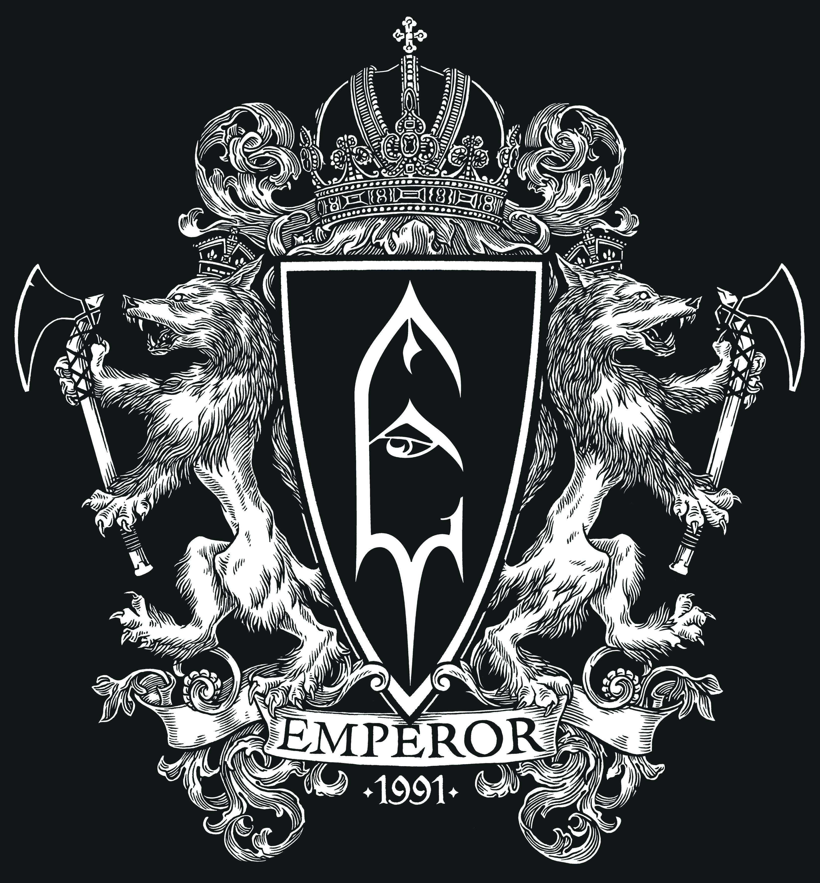 « Le truc cool quand tu te retrouves à bosser avec un groupe comme Trivium, c’est qu’ils parlent de ton boulot à d’autres gens. Qui en parlent à d’autres gens… Et un jour, tu reçois un mail d’Emperor. Mais genre, les « vrais » Emperor. Un des plus grands groupes de la première vague black metal norvégienne, qu’on écoute depuis qu’on a 15 ans. Ils voulaient qu’on revisite leur logo, encadré par une couronne et deux lions – parce que cette couronne et ces deux lions provenaient du blason de leur ville, Bergen, et qu’ils étaient désormais copyrightés.
