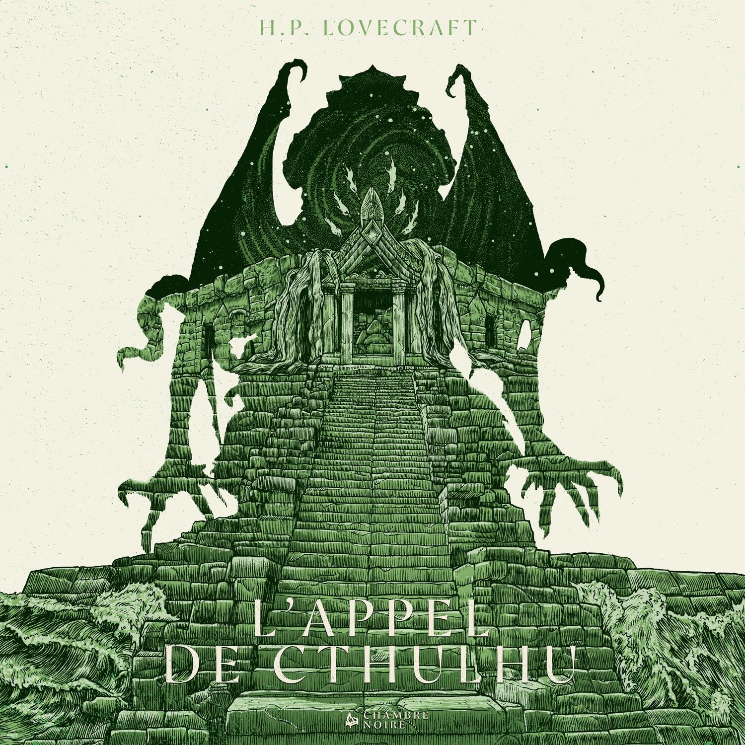 « Ça, c’est venu de Florian Dennisson, un type rencontré dans la scène hardcore qui lançait Chambre Noire, une maison d’édition d’audiobooks et d’ebooks. Il n’était pas satisfait des traductions françaises des nouvelles de Lovecraft et avait fait faire de nouvelles versions de deux d’entre elles. Il les a ensuite éditées et a fait appel à nous pour les couvertures. On en a profité pour expérimenter et pousser le truc à fond, en dessinant tout, y compris le titrage et le logo de la maison d’édition.