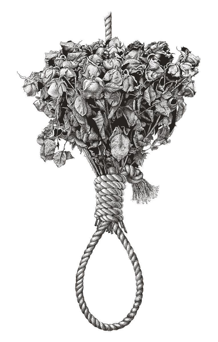 « Une de nos premières illustrations. C’est moi (Jesse) qui l’a faite, l’année où on a décidé de se lancer en duo sous le nom Fortifem. Adrien était parti au Mexique avec l’agence de communication pour laquelle il bossait à l’époque et m’avait envoyé un bouquet de 53 roses – 53 étant un de nos chiffres fétiches. J’ai laissé sécher le bouquet, je l’ai pris en photo et j’ai fait ce dessin. À son retour, Adrien a proposé qu’on en fasse des tirages et quelques t-shirts.