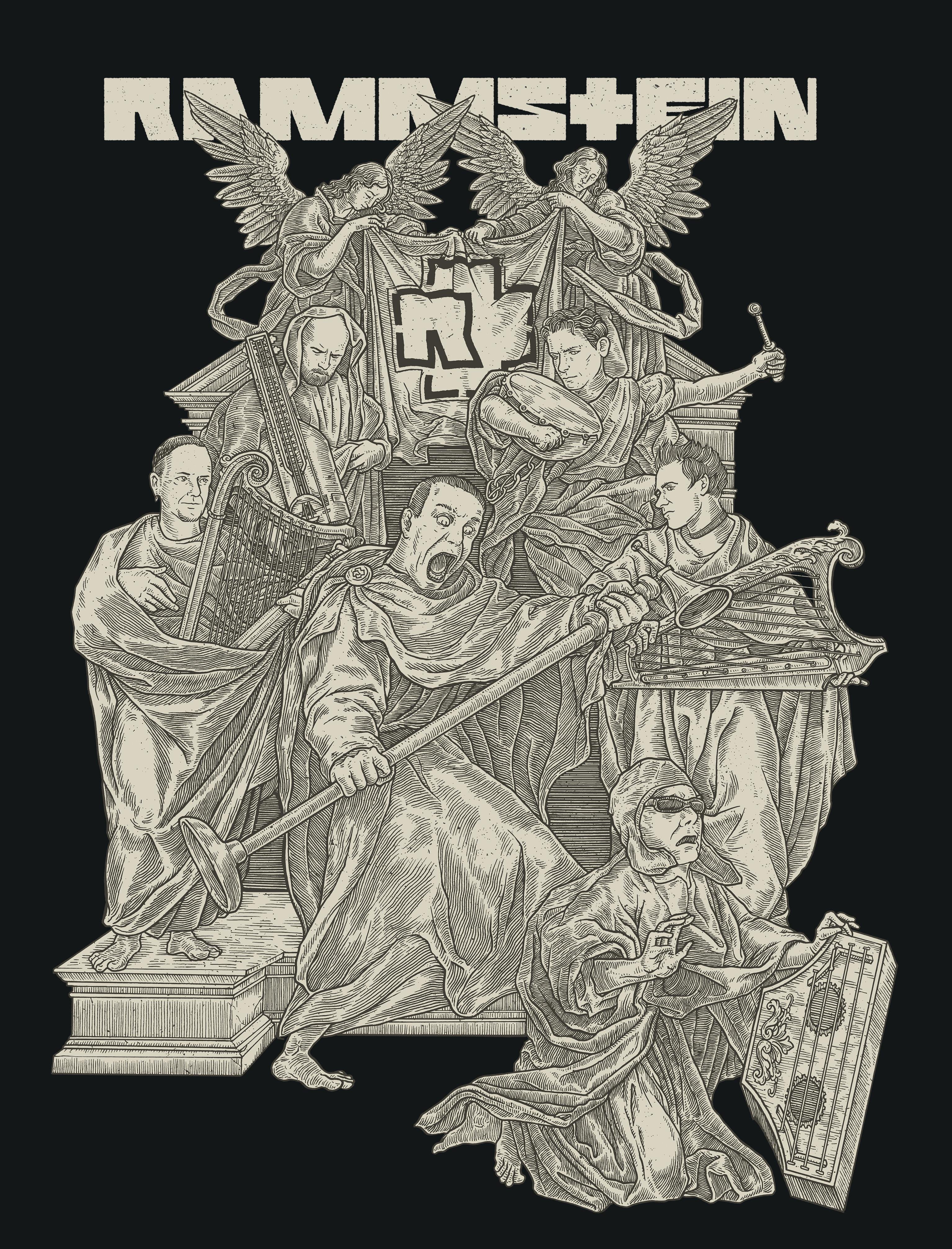 Adrien Havet et Jesse Daubertes ont réussi en un peu moins de 10 ans à se faire une place de choix dans le paysage visuel international sous le nom de Fortifem. Leur particularité ? Un style unique et instantanément reconnaissable qui emprunte à la gravure, au tatouage et à l'imagerie metal, et une éthique de travail forte, où l’implication et l’exigence restent la même, qu’ils travaillent pour Rammstein ou un jeune groupe débutant. À l’occasion de leur participation au Red Bull Music Festival Paris, où ils mettront en scène une cérémonie metal inédite sur la scène du Trianon le 25 septembre, le couple d’illustrateurs parisiens est revenu avec nous sur quelques-uns des projets qui ont marqué leur parcours.