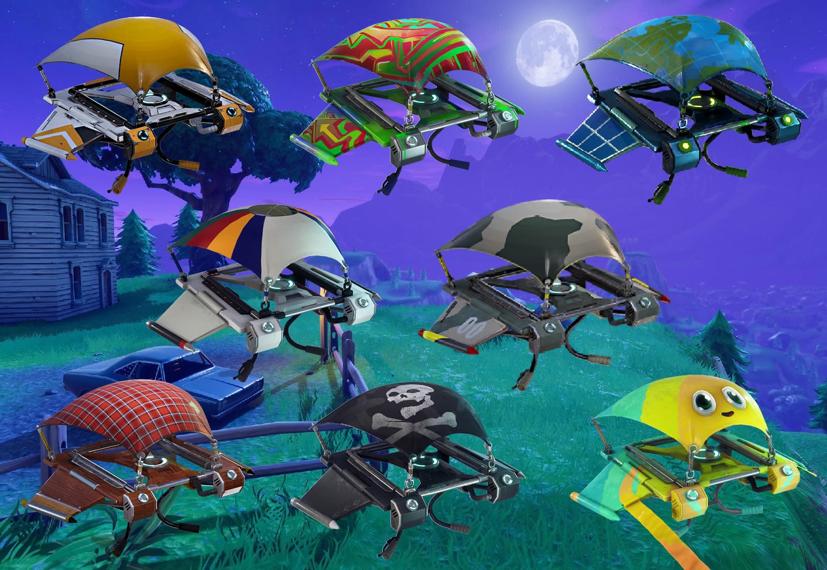 Une fois le rôle du planeur stabilisé et le consensus trouvé sur les limites de son utilisation, le planeur de fortnite aurait pu devenir un élément parmi d’autres, fondu dans le reste des éléments graphiques du jeu. Mais, puisque présent à quasiment chaque match sans exception, il n’est pas étonnant qu’il ait rapidement été proposé dans des centaines, variations plus ou moins rares et toujours plus inventives.