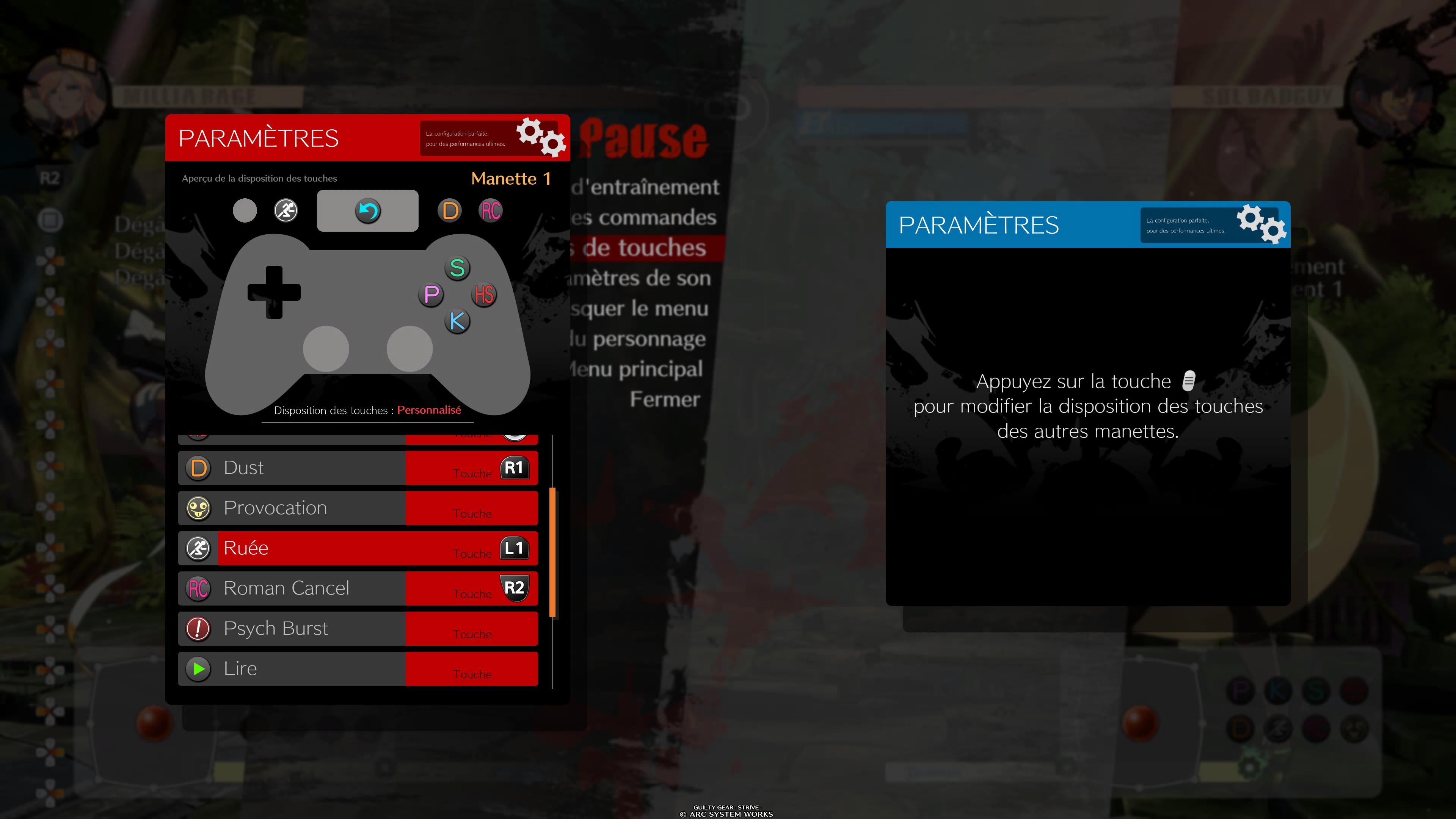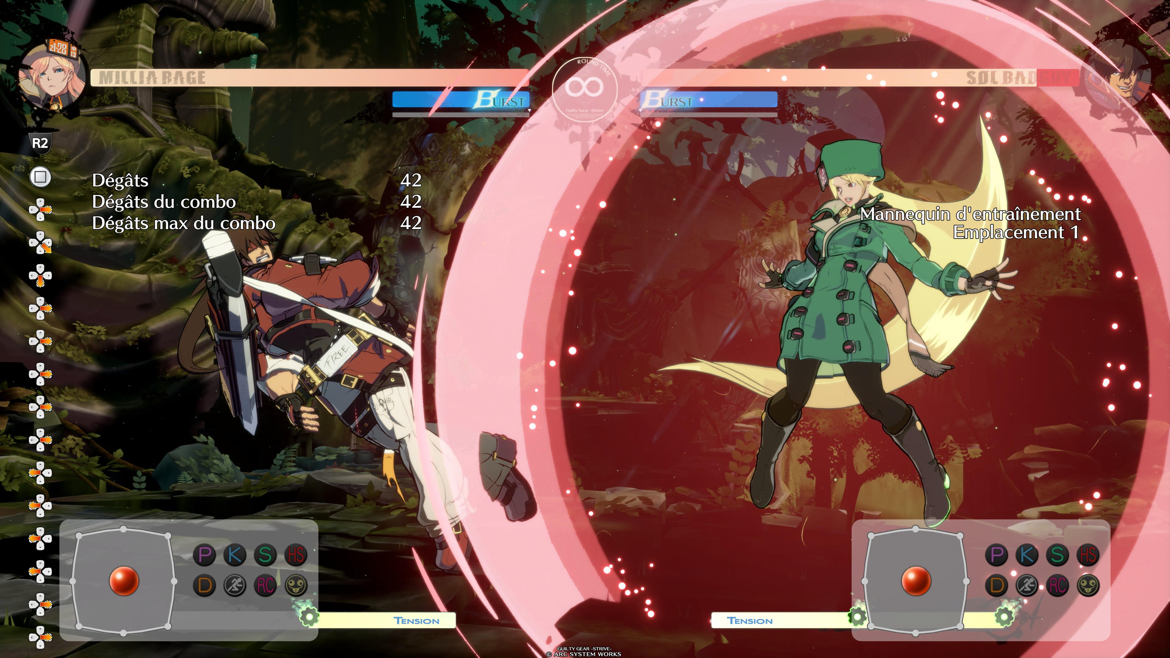 Un petit détail qui peut avoir toute son importance. Pour beaucoup de joueurs débutants, la plus grande difficulté sur les anime fighters est de réussir à maîtriser les dash aériens. Mais ne vous inquiétez pas, Guilty Gear Strive a pensé à vous. Dans l’interface de personnalisation de votre manette, vous avez accès à une touche de dash ! En l’utilisant, vous serez plus à même de pouvoir jouer des persos comme Millia, qui reposent beaucoup sur des embrouilles devant/derrière et leur mobilité aérienne sans le moindre souci.