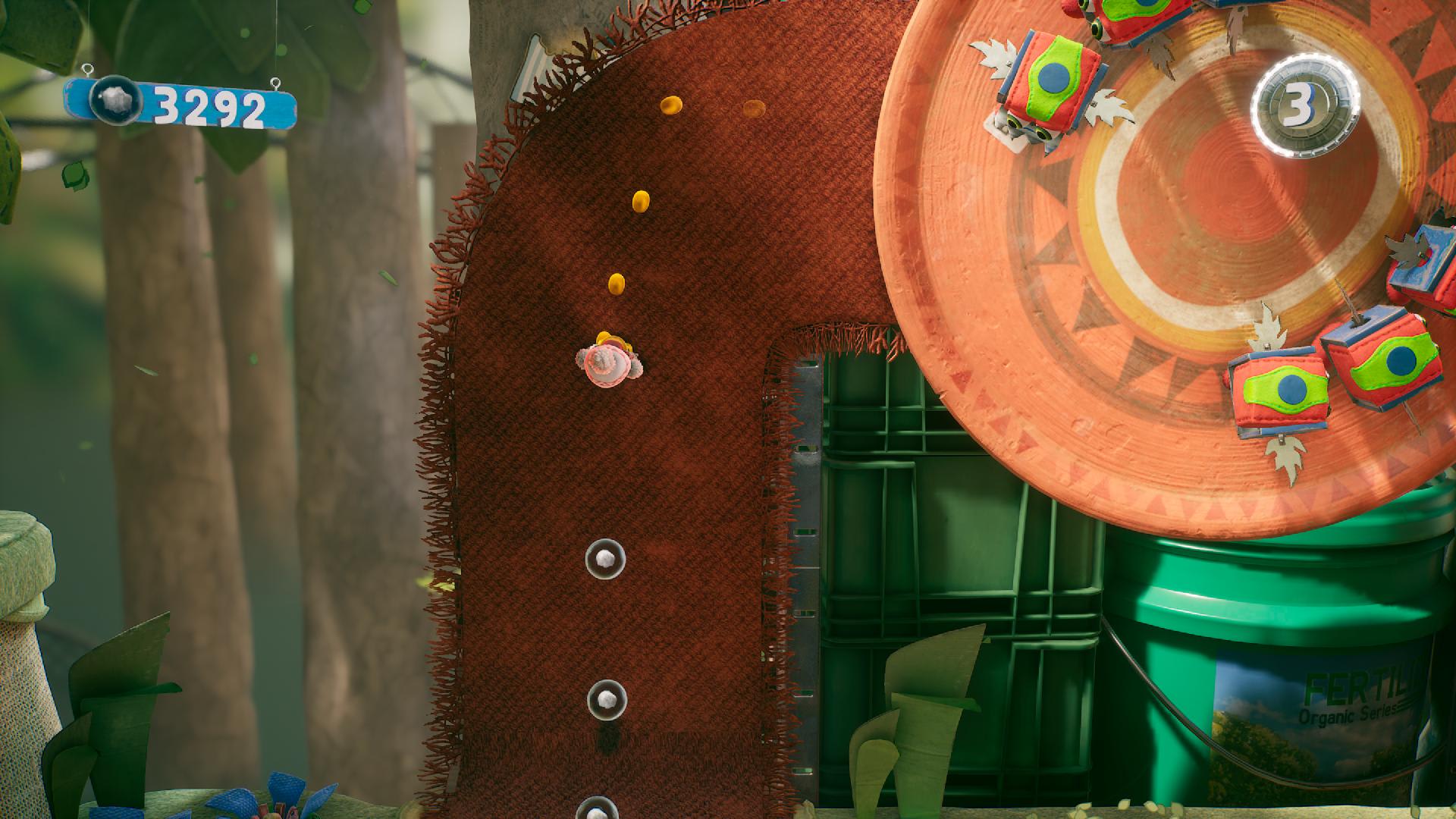Ce nouveau jeu Sackboy lorgne également du côté de Rayman. Comme dans Origins et Legends, des espaces secrets sont à découvrir dans des recoins de chaque niveau ou presque. Longs d’un écran seulement, ils vous proposent un défi qui, si gagné, vous donnera droit à une précieuse orbe. Sackboy s’inspire également de Rayman Origins avec l’un de ses bonus qui double la valeur en points des petites bulles à collectionner dans les niveaux. Ce score doublé ne vaut que pour quelques secondes — et comme avec le Roi Lum de Rayman, il encourage à dévaler des pans de niveaux à toute berzingue.