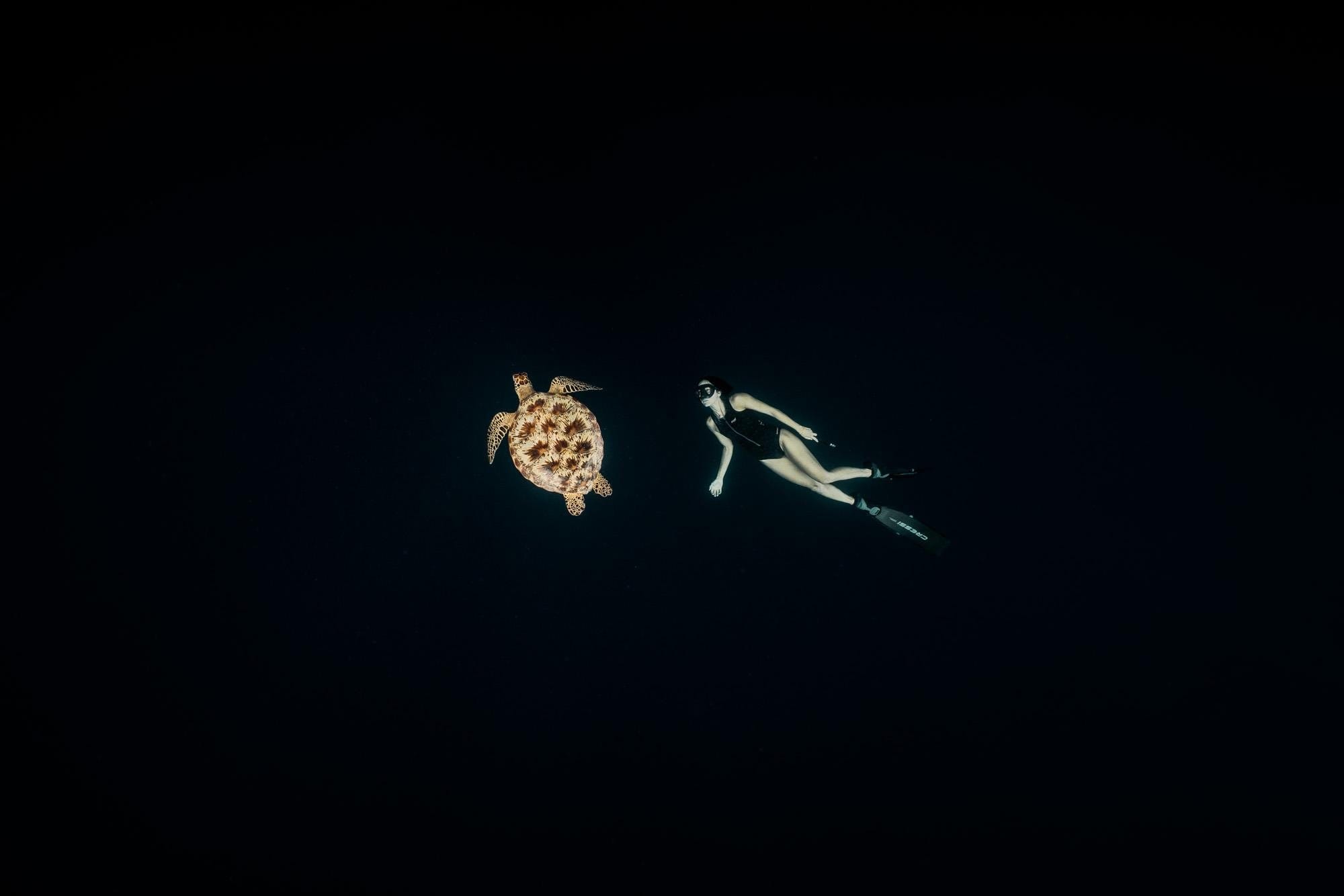 Je me nourris de ce genre de choses. Mais je ne pense pas que ce sont mes inspirations ou références. Forcément, on imprime des choses qu’on veut reproduire à notre manière. J’adore la bande-dessinée, des auteurs comme Myazaki, Loisel, Sandoval… Tout est permis dans la BD. J’aime le côté magique, qui sort du quotidien. Pour moi, dans mes projets, c’est la même chose. Puisqu’on évolue dans l’eau, on n’a pas de limites. Par exemple, si tu regardes les caméramans qui ont appris à filmer sous l’eau, tu remarques qu’ils sont très statiques. Je travaille avec des gens qui ont appris à filmer sur terre. Ils n’ont pas cette limite dans les plans. C’était important de travailler avec Jacques qui est un ami et qui me connait parfaitement, moi, ma vision, mes envies, mon approche si particulière du cadre.