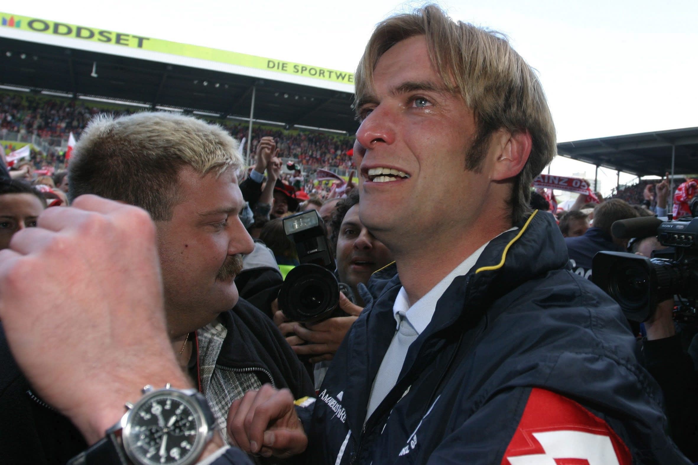 La capacité de Klopp à transformer les outsiders en favoris s'est révélée pour la première fois à Mayence. Après plusieurs échecs, l'équipe a décroché la promotion en Bundesliga pour la première fois de son histoire, en jouant avec l'intensité qui allait devenir la signature de Klopp. Avant ce dernier match de la saison, l'Alemannia Aache, 3e, comptait deux points d'avance dans la lutte pour la dernière place de promu, mais sa défaite 1-0 à Karlsruhe a ouvert la voie à Mayence. Les hommes de Jürgen Klopp en ont profité pour se faufiler à la troisième place. Deux buts de Michael Thurk et un de Manuel Friedrich ont scellé la victoire dont Mayence avait besoin pour déclencher une fête incroyable se poursuivant jusqu’au bout de la nuit. Deux décennies plus tard, l'entraîneur considère toujours cet exploit comme l'un des plus beaux de sa carrière d’entraîneur.