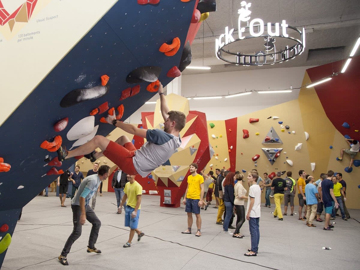 Sauna, hammam, restaurant, Block’Out possède tous les classiques de la salle d’escalade d’aujourd’hui. Mais ce qui la différencie des autres, ce sont ses 800m² de bloc à disposition des petits et des grands. Pas besoin de baudriers ou de cordes, on peut foncer tête baissée sur la structure de son choix.