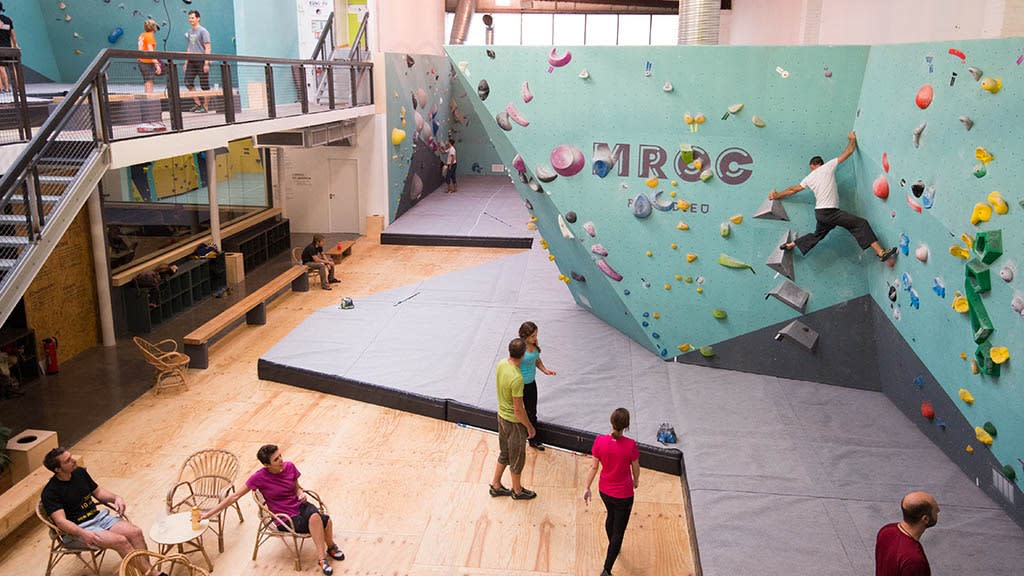 Mroc possède pas moins de trois salles d’escalade dans la région lyonnaise. Son crédo ? Des décors modernes et stylés, avec des blocs aux tons pastel, des meubles qui sentent bon la brocante et des œuvres de street-art.