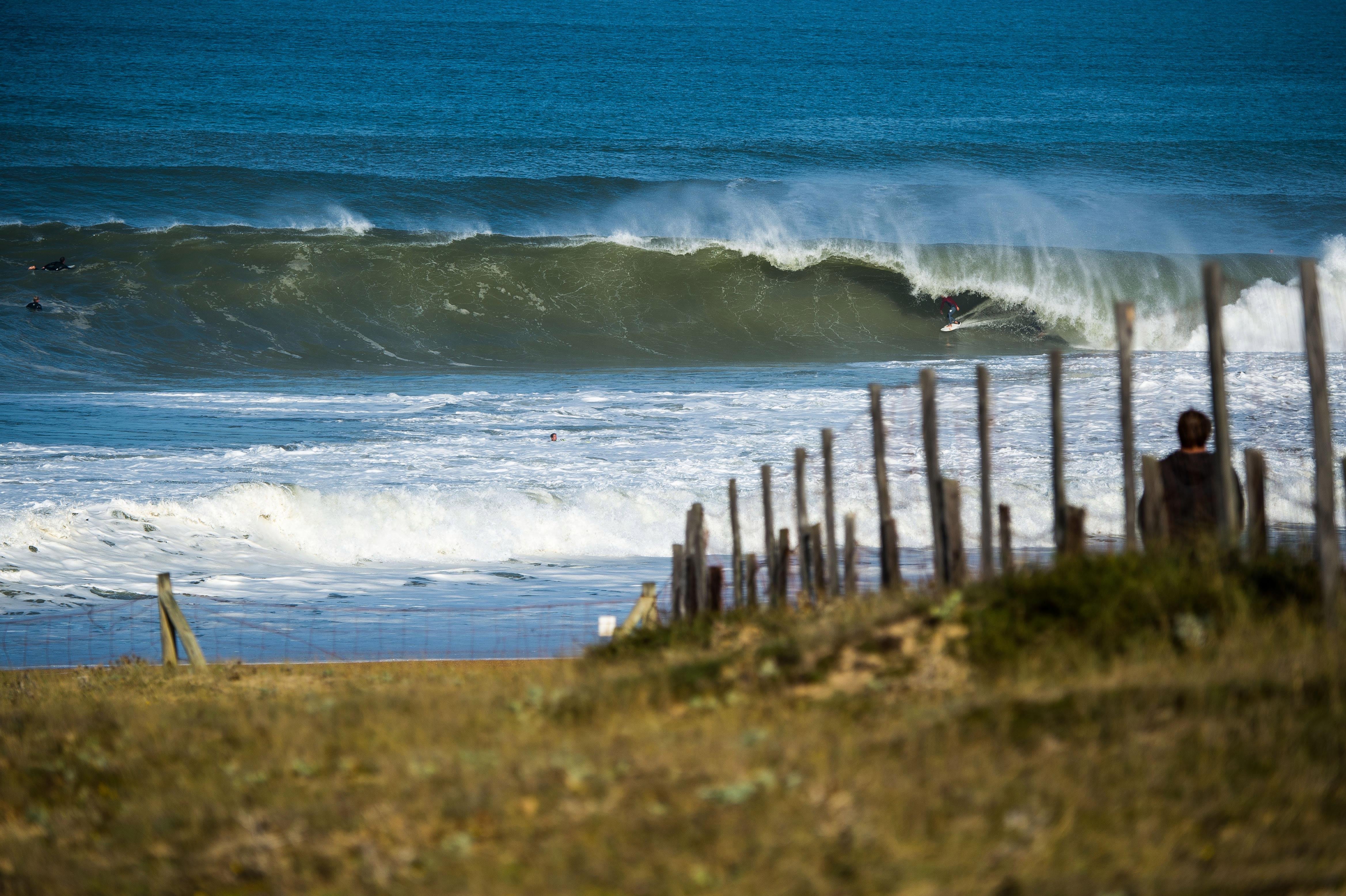 Hossegor a longtemps accueilli l'événement du WSL Championship Tour, le Quiksilver Pro France, avec La Nord ou La Gravière, qui offrent des beach breaks à gros rouleaux, mais il y a aussi beaucoup de vagues au nord, dans les Landes, et au sud, depuis la ville balnéaire de Biarritz jusqu'au Pays basque, à la frontière espagnole.