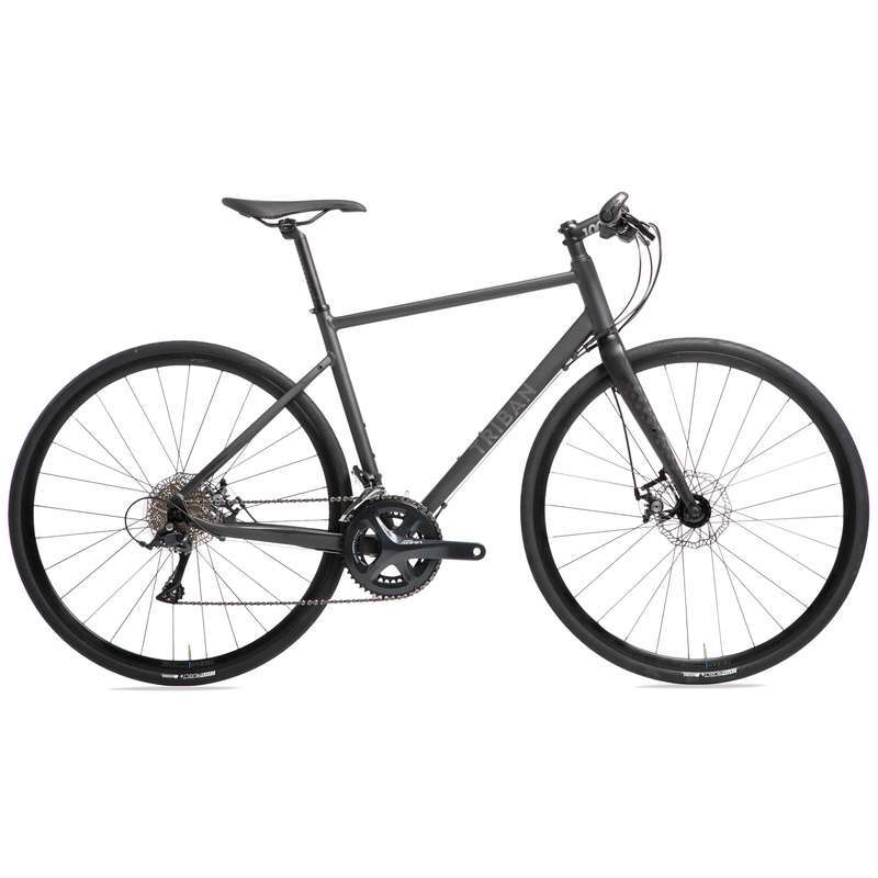 Également disponible avec un cintre de route, ce Triban RC500 est plus typé route que d’autres vélos de cette liste. Pour un prix relativement modeste, il offre un excellent équipement dont une transmission Shimano Sora et des freins à disque. Les roues et les pneus de 28 mm la marque maison de Décathlon, sont rapides et peuvent même être installés sans chambre à air. La fourche est en carbone et le reste du cadre est en aluminium afin de lisser au mieux les aspérités de la route.