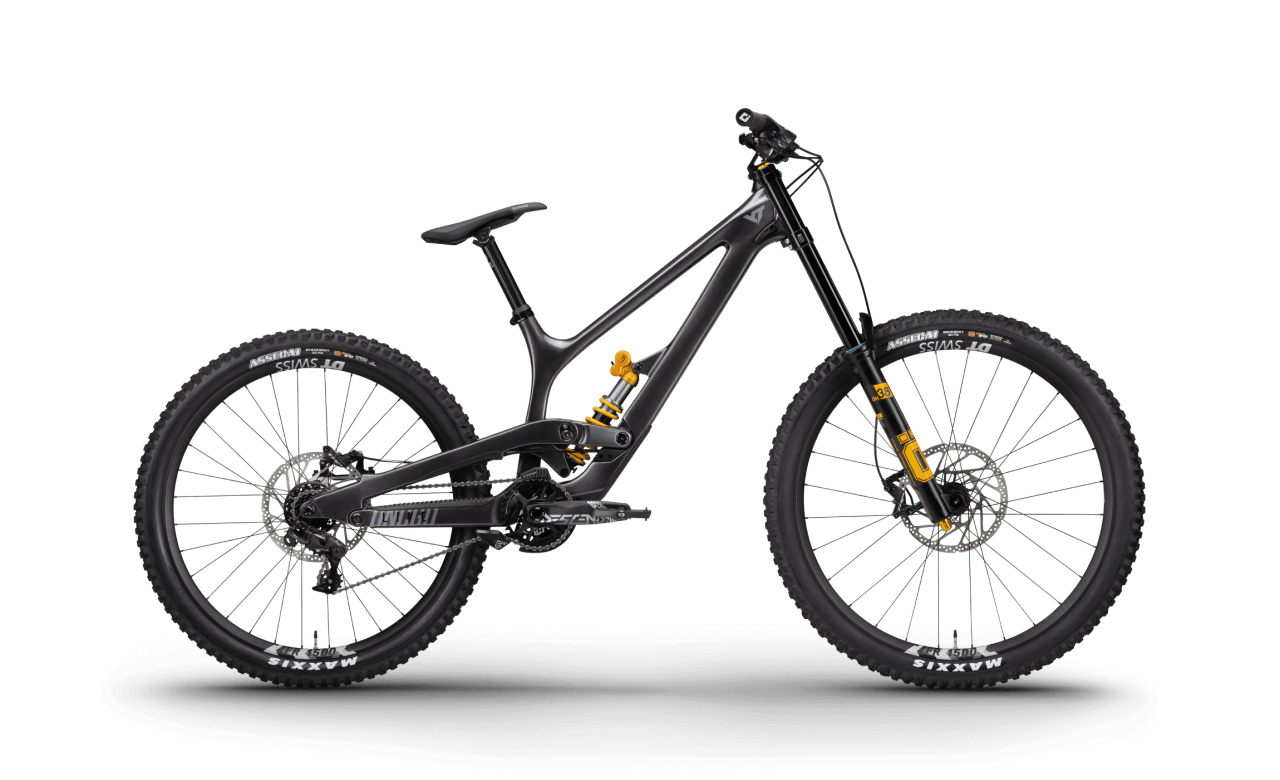 L’équipement comprend également des roues OQUO MC32 TEAM, des pneus Maxxis Assegai et DHR, ainsi qu’un système de freinage et une transmission haut de gamme, spécialement conçus pour résister aux conditions les plus extrêmes. Le passage interne des câbles et la ligne épurée du cadre soulignent la finition premium du vélo.