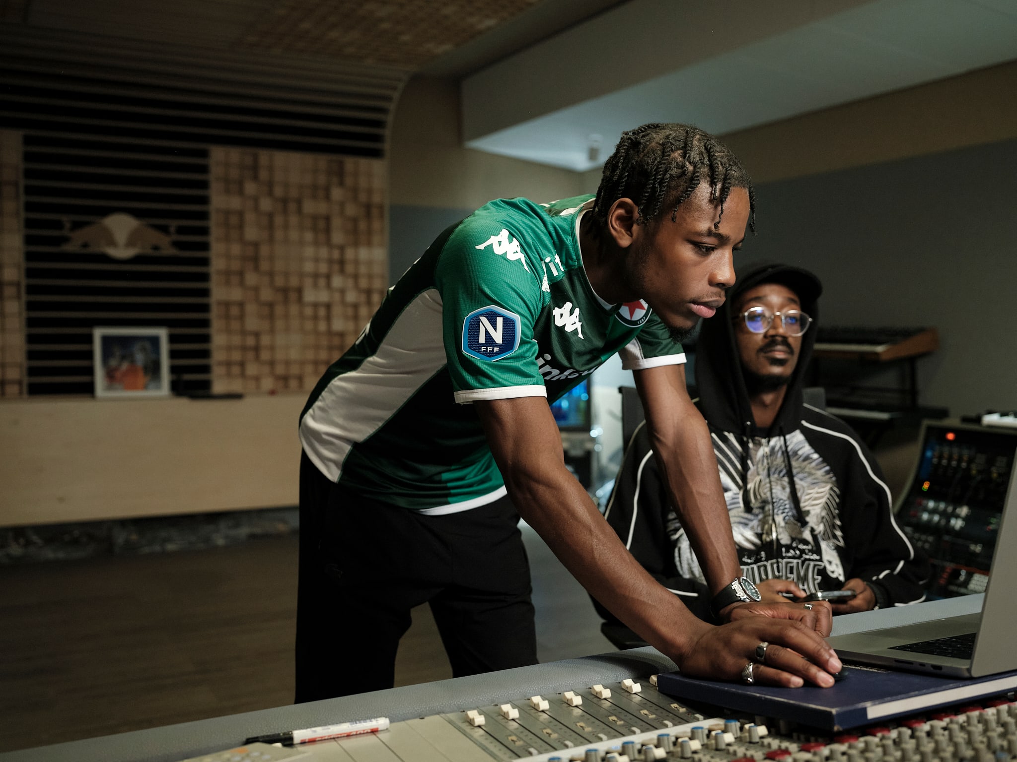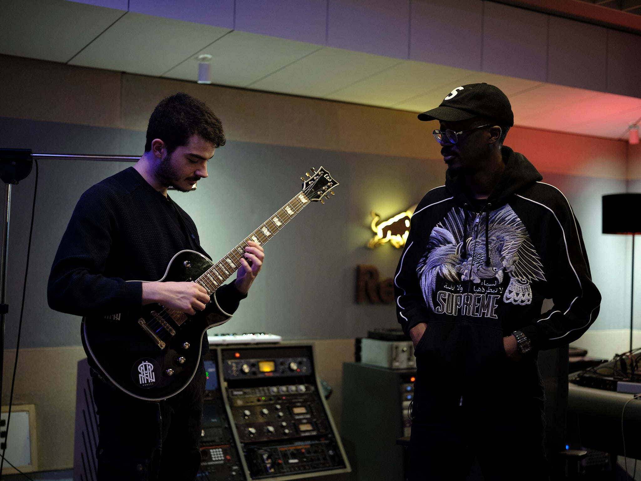 La musique jouée en club est souvent électronique. Un style très large, qui compte de nombreux sous-genres. House, techno, drum and bass, two-step ou trance n’en sont que quelques exemples. La musique de club peut donc s’interpréter de multiples façons. Dans le rap, qui se nourrit de ces styles, ce sont souvent les mêmes codes qui reviennent. Un kick sur tous les temps, ou un rythme autour de 130 battements par minute. Plutôt habitué des rythmiques drill ou afro, Beendo Z va devoir relever le challenge lancé par Red Bull de composer avec le producteur Junior Alaprod et la guitare sèche de PC un son parfait pour s’ambiancer en club.