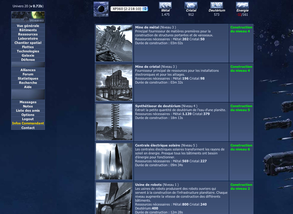 Pourtant, dans son approche, OGame est d'une banalité absolue. En créant votre compte, vous héritez d'une planète placée aléatoirement dans l'univers ainsi que d'une poignée de matières premières. Votre première mission ? Construire des bâtiments afin de collecter des ressources qui serviront, à terme, à développer d'autres installations, technologies, vaisseaux de combat ou unités de défenses. Et les moyens d'accroître vos revenus ne manquent pas : vous pourrez piller vos voisins, explorer les « profondeurs de l'espace » afin de collecter vaisseaux et matières premières ou coloniser d'autres planètes. La particularité d'OGame ? C'est un monde persistant. C'est à dire qu'il ne s'arrête jamais de tourner ni d'évoluer, même en votre absence.