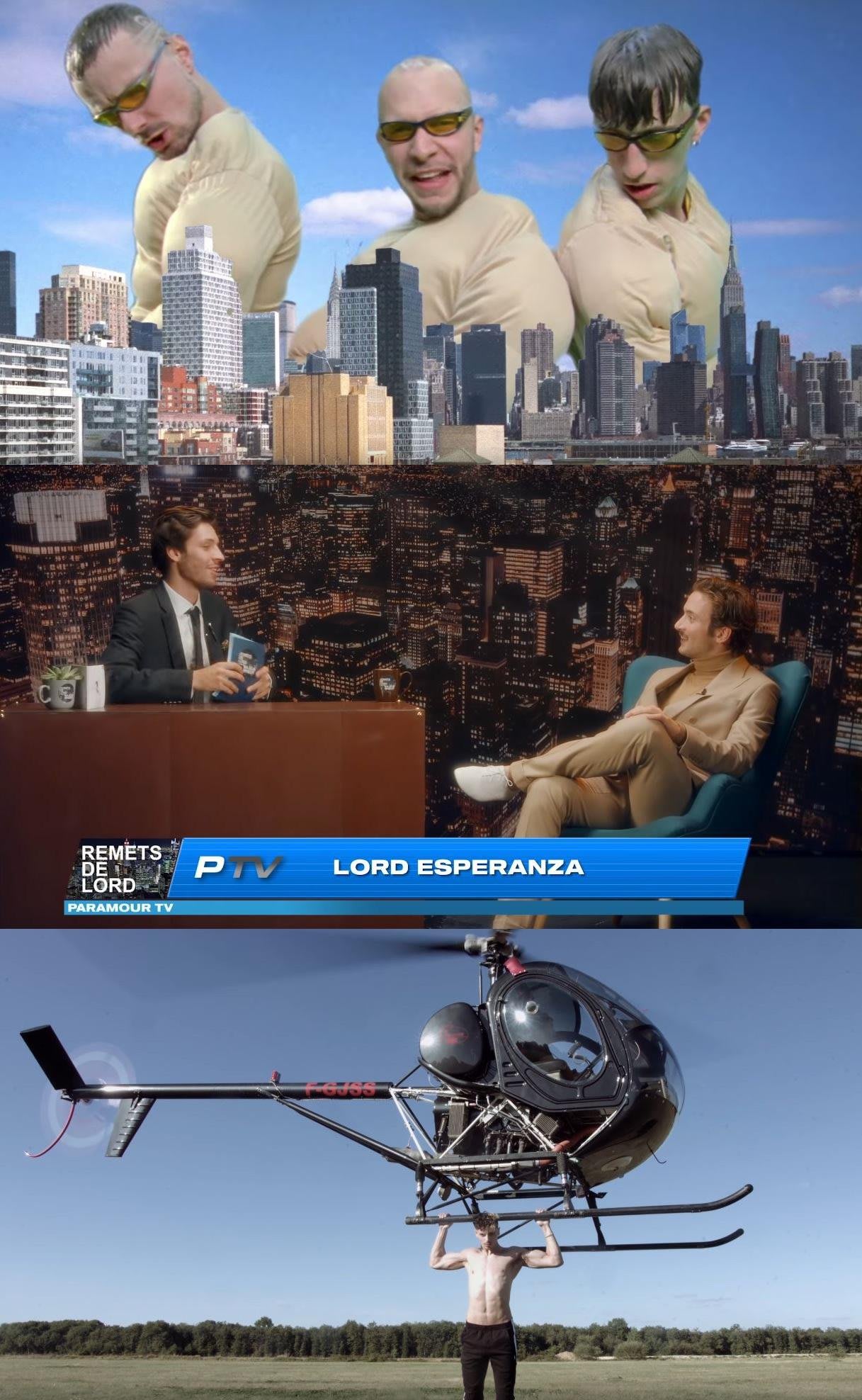 Lord Esperanza a lui aussi créé sa propre télévision, à son image et à l'américaine (Paramour TV), et a invité la chanteuse Yseult dessus. Le Youtubeur Prime lui s'en fout de la TV, il préfère faire des tractions sur son hélico, et rapper « Speedboat » à l'écart des affres de l'audimat.